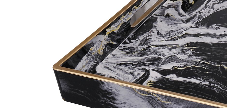 Поднос Gold Stripes Black Marble