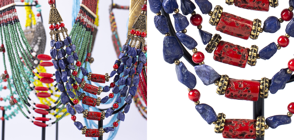 Этническое ожерелье на подставке Red & Violet