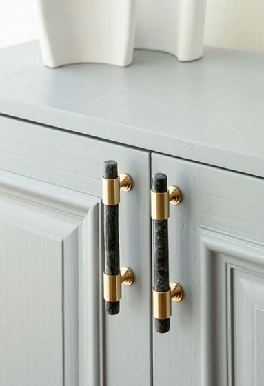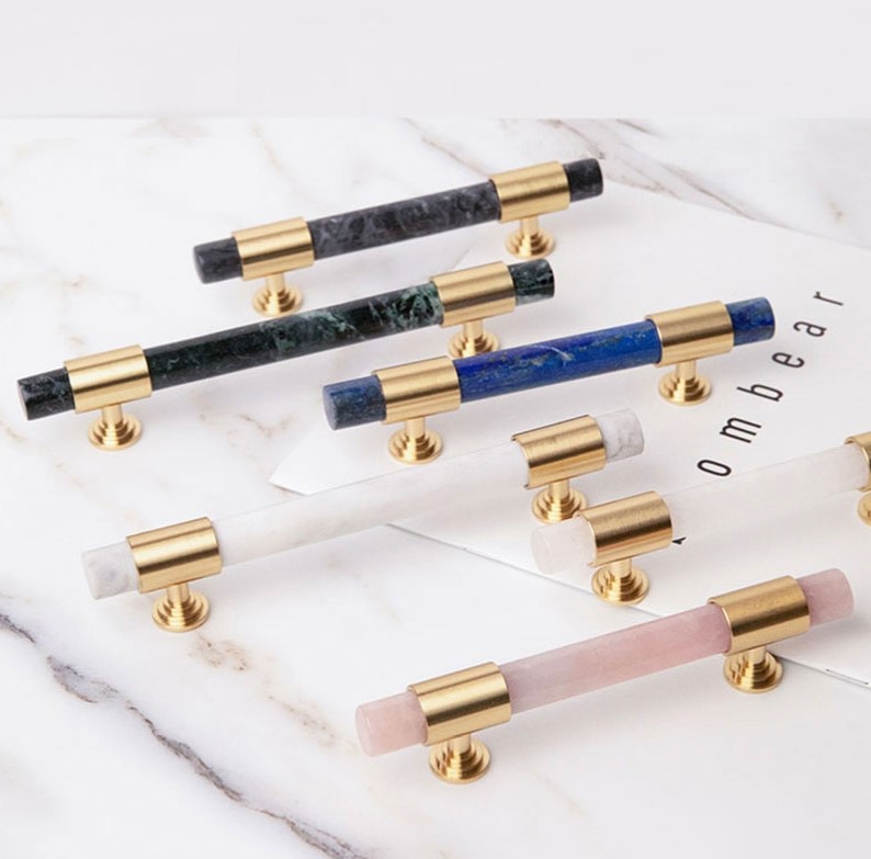 Мебельная ручка из латуни и мрамора Monsterior. Одинарное и двойное крепление. Цвет на фото.