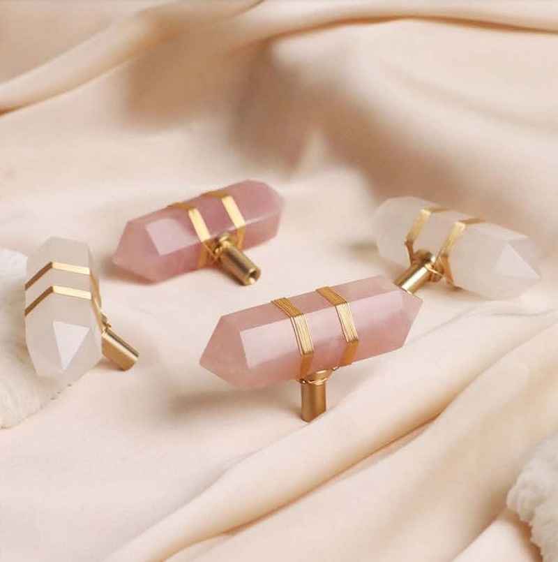Мебельная ручка из латуни и полудрагоценных камней Monsterior. Одинарное крепление. Цвет на фото.