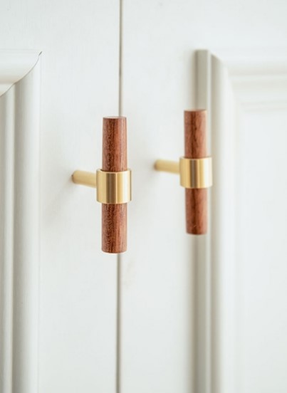 Мебельная ручка из латуни и дерева Monsterior. Одинарное и двойное крепление. Цвет на фото.