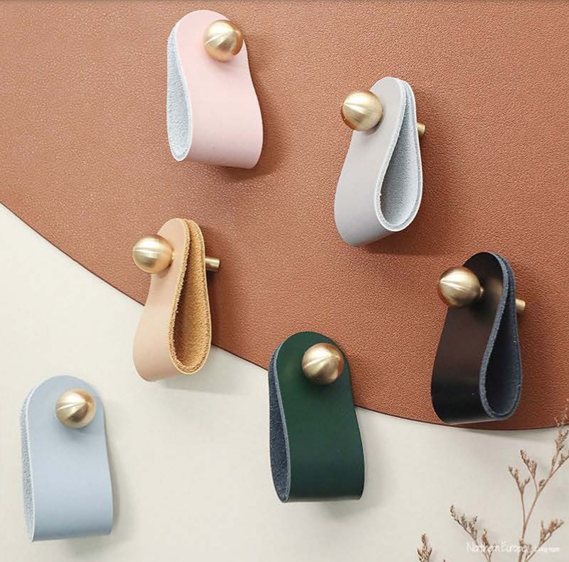 Мебельная ручка из латуни и кожи Monsterior. Одинарное крепление. Цвет на фото.
