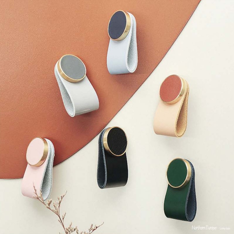 Мебельная ручка из латуни и кожи Monsterior. Одинарное крепление. Цвет на фото.