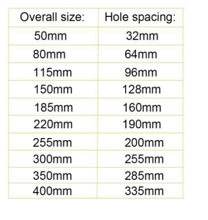 32/64/96/128/160/190/200/255/285/335 мм |