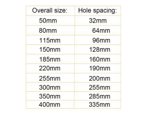 32/64/96/128/160/190/200/255/285/335 мм |