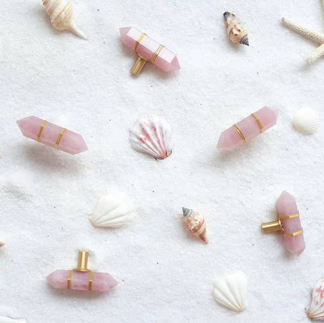 Шикарные ручки для мебели из розового кварцита и латуни!