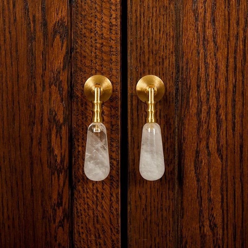 Мебельная ручка из латуни с камнями и кристаллами Monsterior. Одинарное крепление. Цвет на фото.