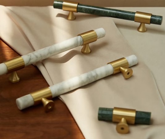 Мебельная ручка из латуни и мрамора Monsterior. Одинарное и двойное крепление. Цвет на фото.