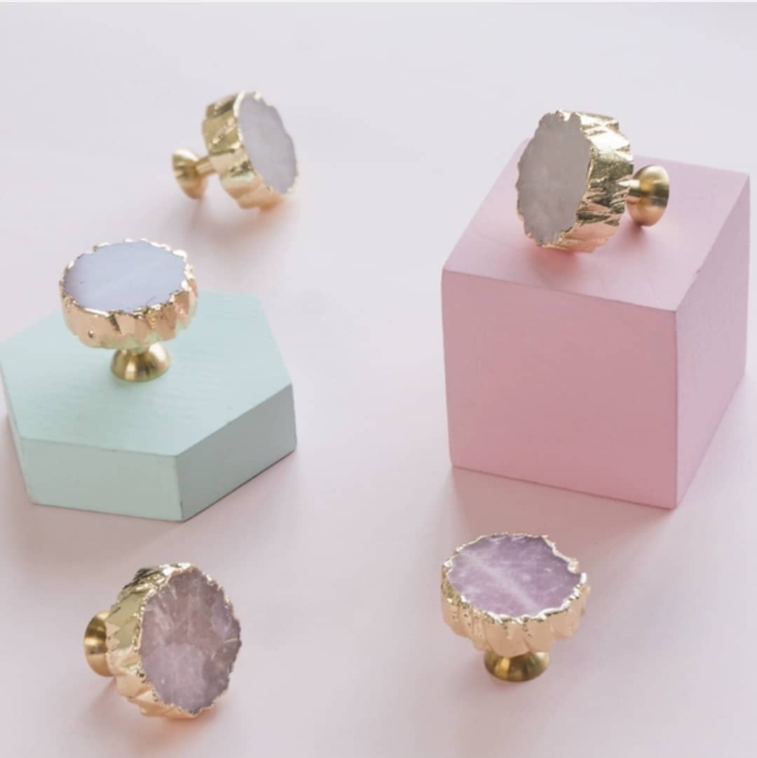 Нежной красоты ручки для мебели – из кварцита и латуни!