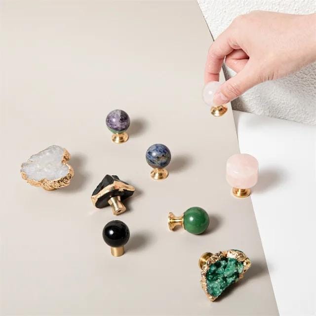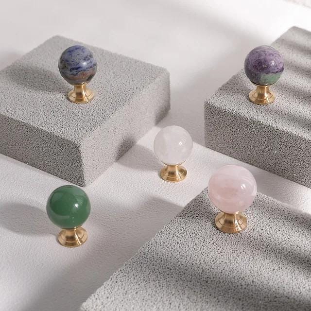Идеально отполированные сферы из натуральных самоцветов – роскошные дизайнерские ручки для мебели от Monsterior. Отличный выбор для обновления вашей любимой мебели. Просто смените стандартные ручки на ручки-красотульки. Аметист, флюорит, розовый кварц, кварц и т.д.