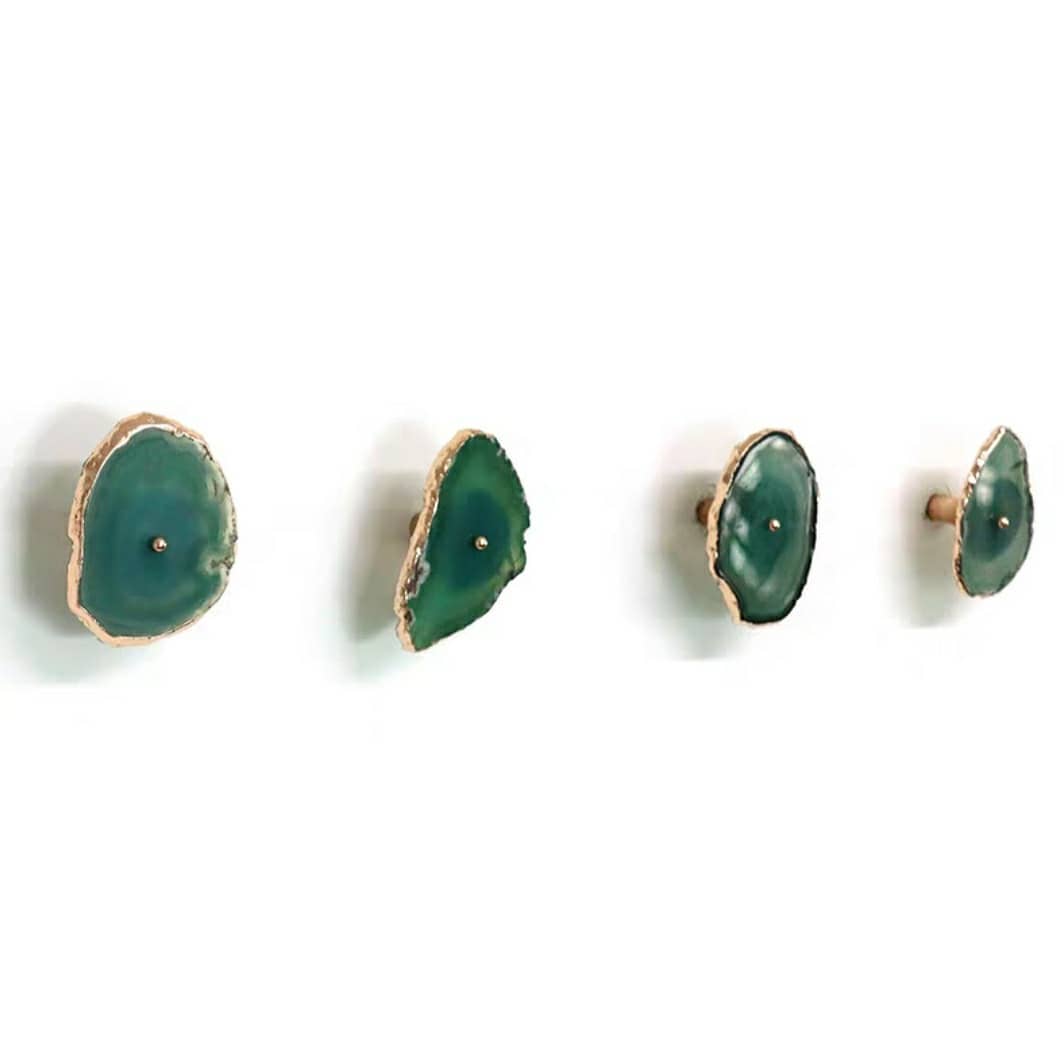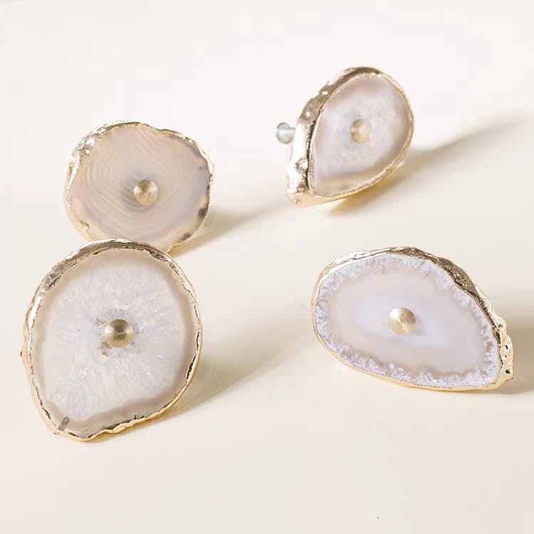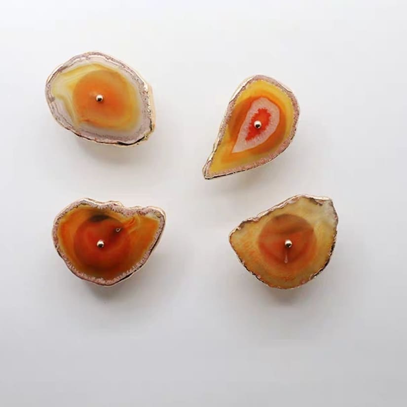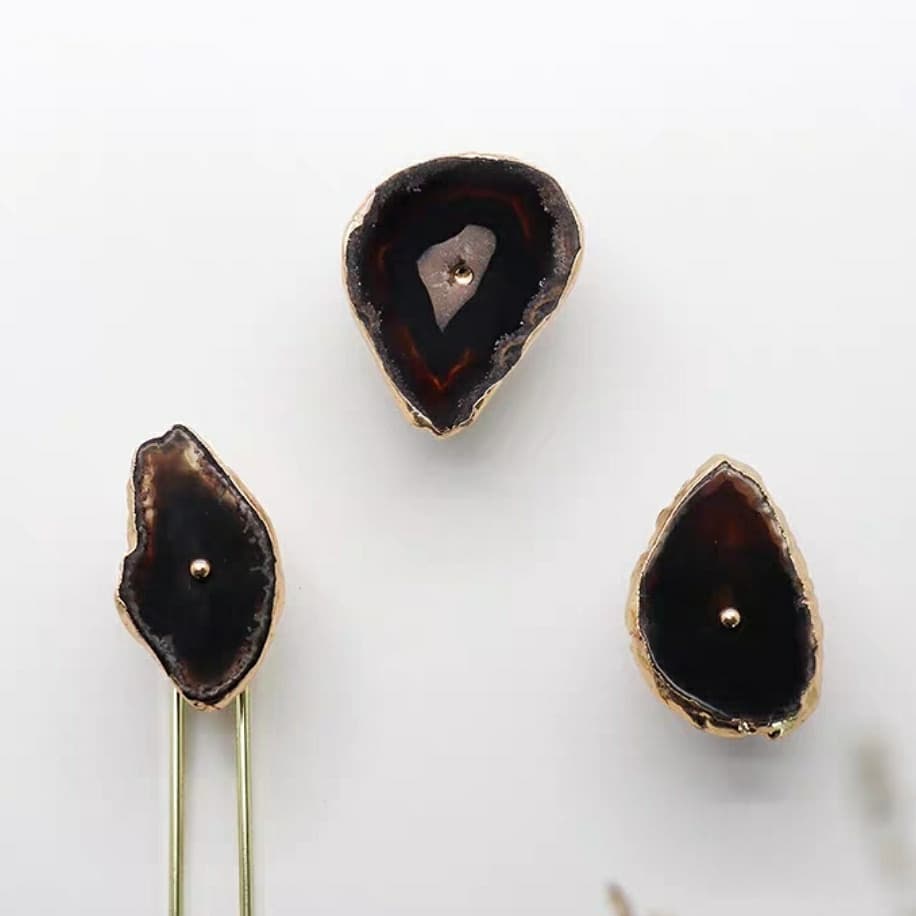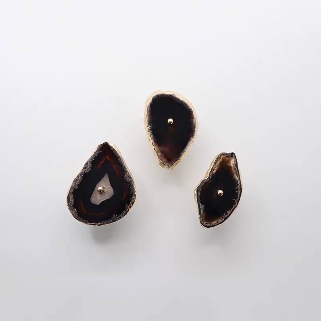Посмотрите новым взглядом на ваши шкафы, тумбочки и т.д. Представьте, что вместо привычных ручек – ручки-красотульки. Впечатляет? Неповторимые мебельные ручки и одновременно крючки/держатели . Срезы настоящих полудрагоценных камней, с их уникальной фактурой, дополненные сусальным золотом, отлично украсят ваш интерьер. Идеальная полировка подарит регулярный нежно-тактильный контакт с самоцветами.