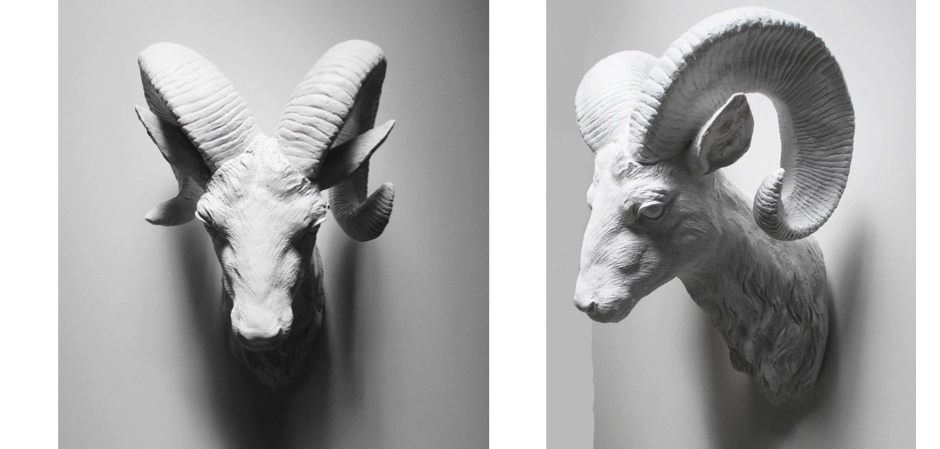 Голова барана покрашена в белый цвет, который отлично сочетается с бронзовыми рогами. Корпус сделан вручную из прочного материала - пластикрита (акриловая смола). Пластикрит широко применяют при изготовлении декоративных изделий, таких как лепнина на потолке, внешние фасады, театральные статуи, а также различные модели для экспозиций и выставок.
