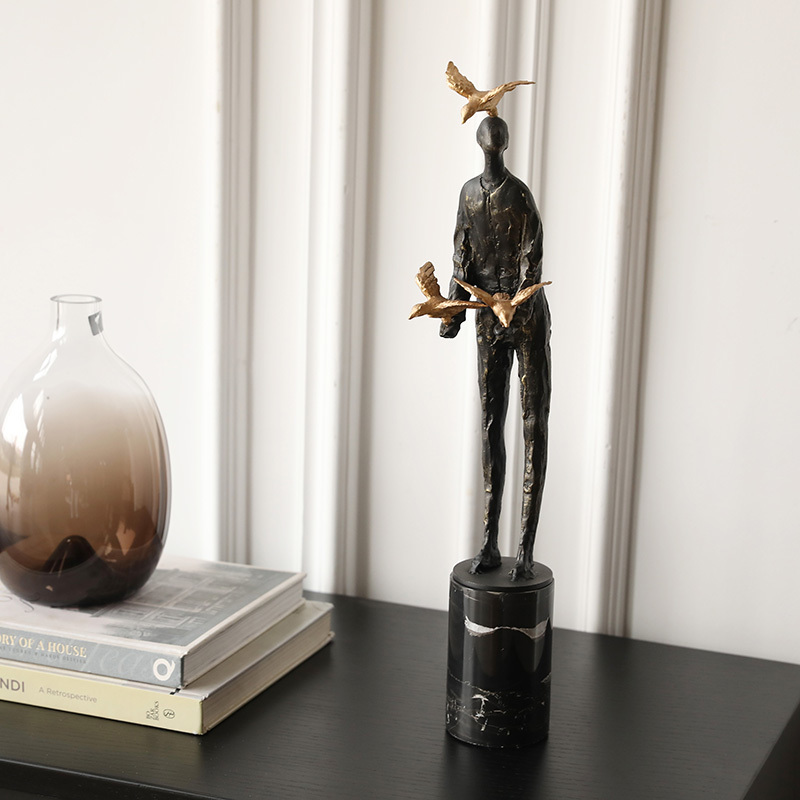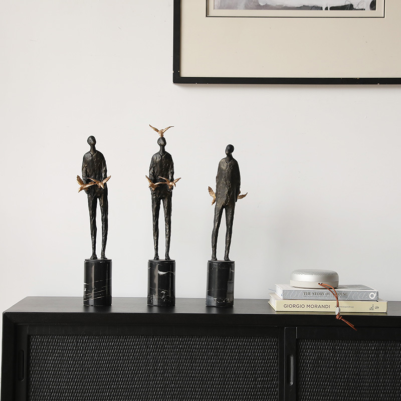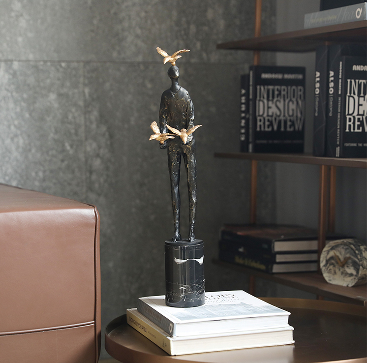 Декор и статуэтки, всегда добавляют в интерьер динамики и точек, приковывающих взгляд.