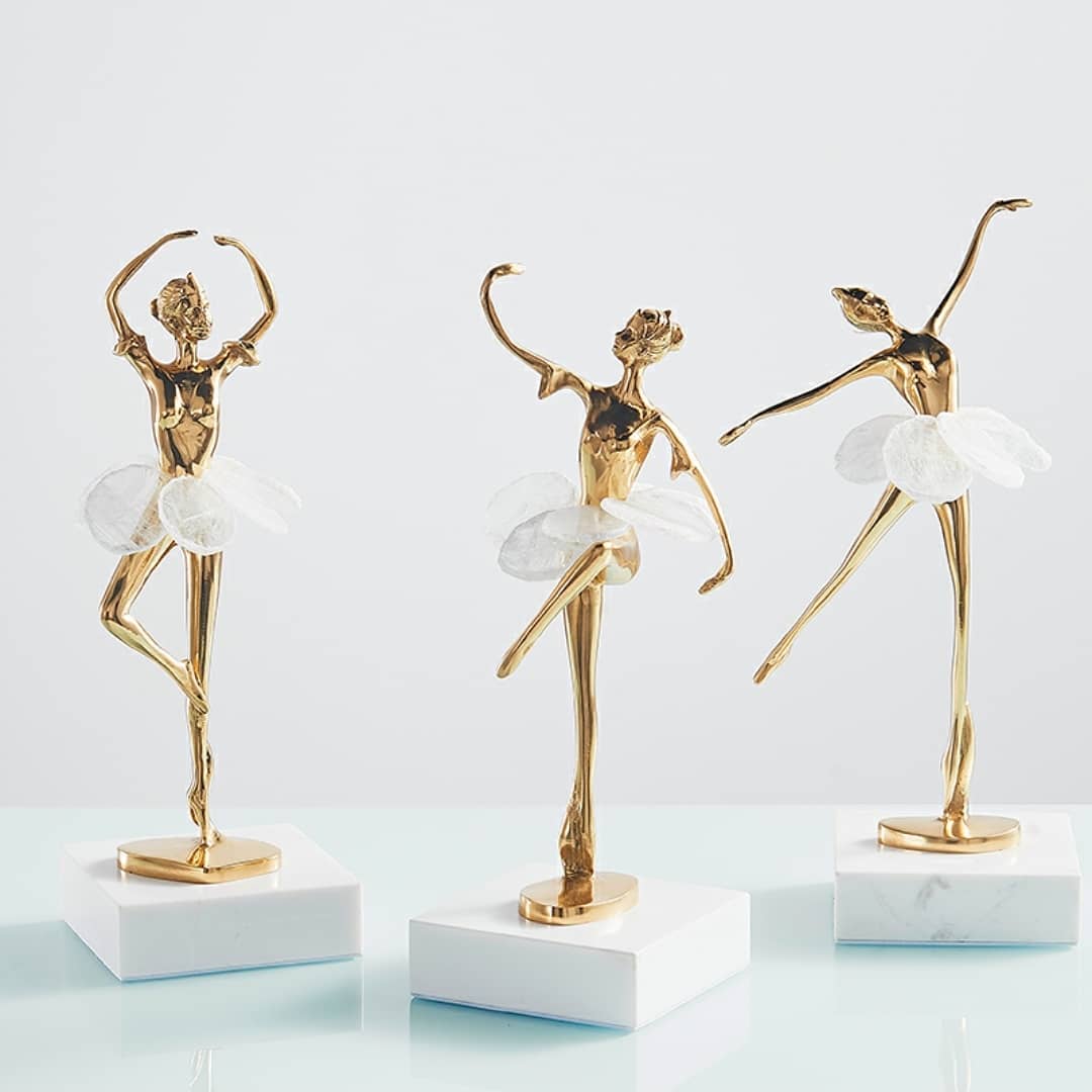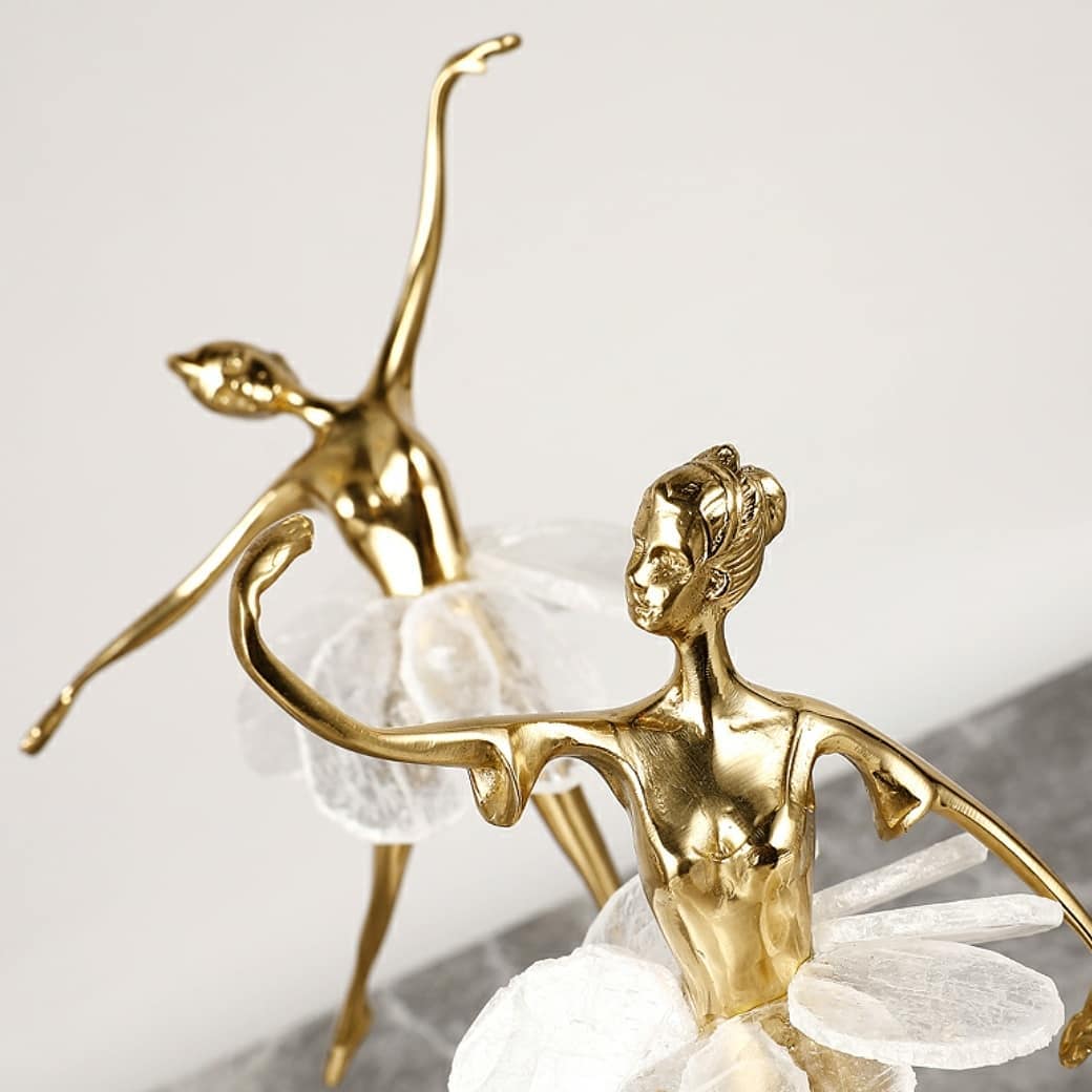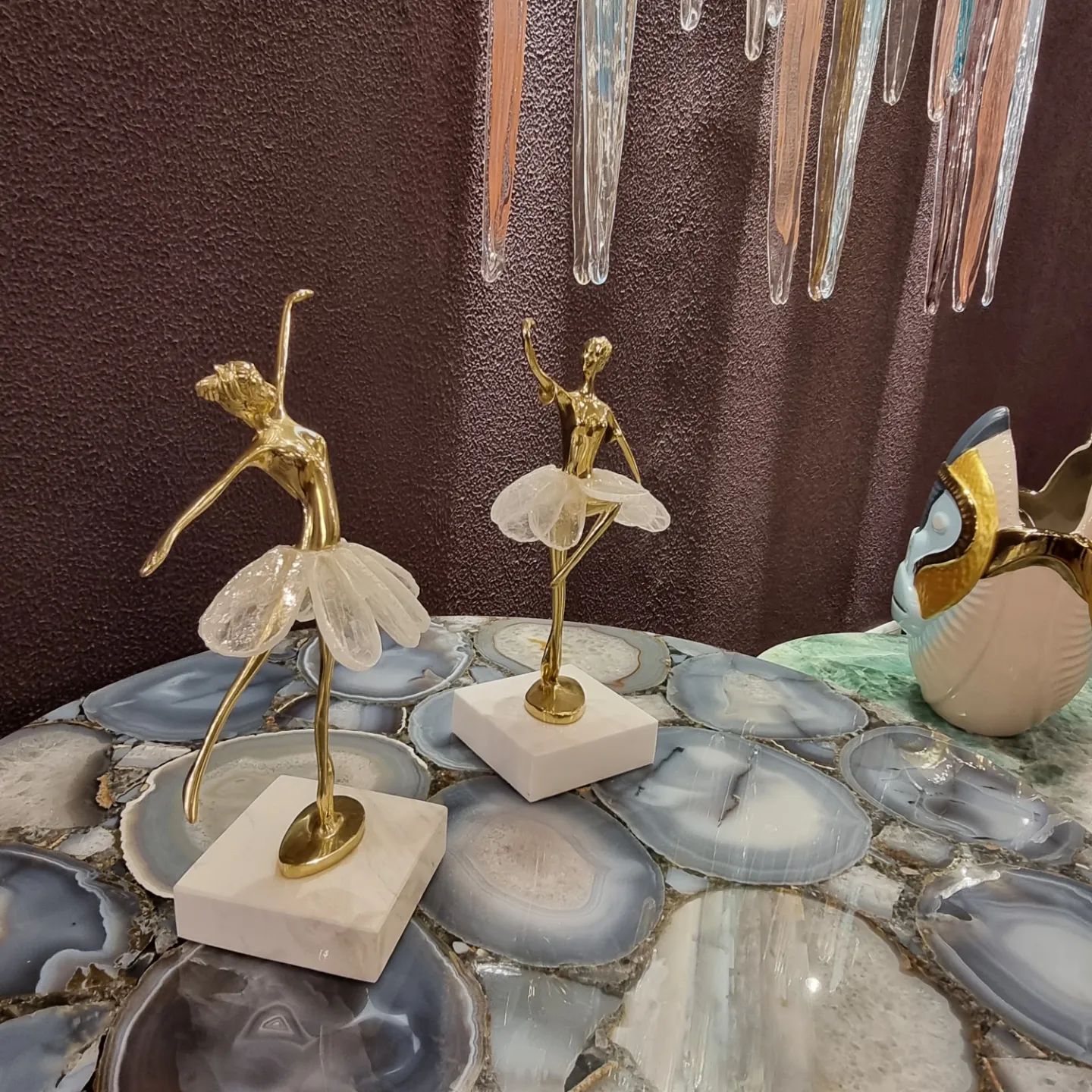 Красавицы-балерины в великолепных пачках из кристаллов кварца, на мраморных подставках. Благородная, блестящая латунь, отлитая в великолепные формы. Роскошный, вдохновляющий декор для вашего интерьера, который добавит в атмосферу красоты и возвышенных эстетических ноток.