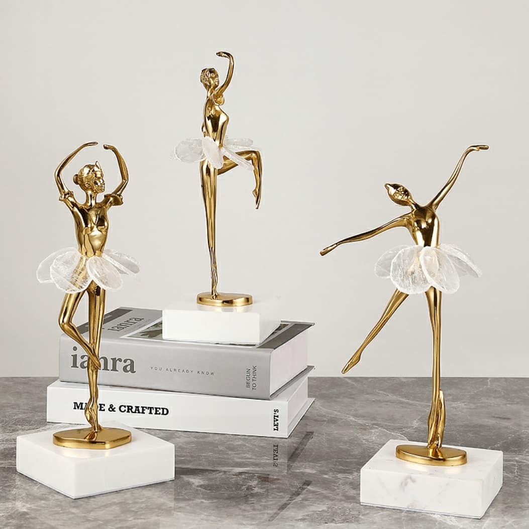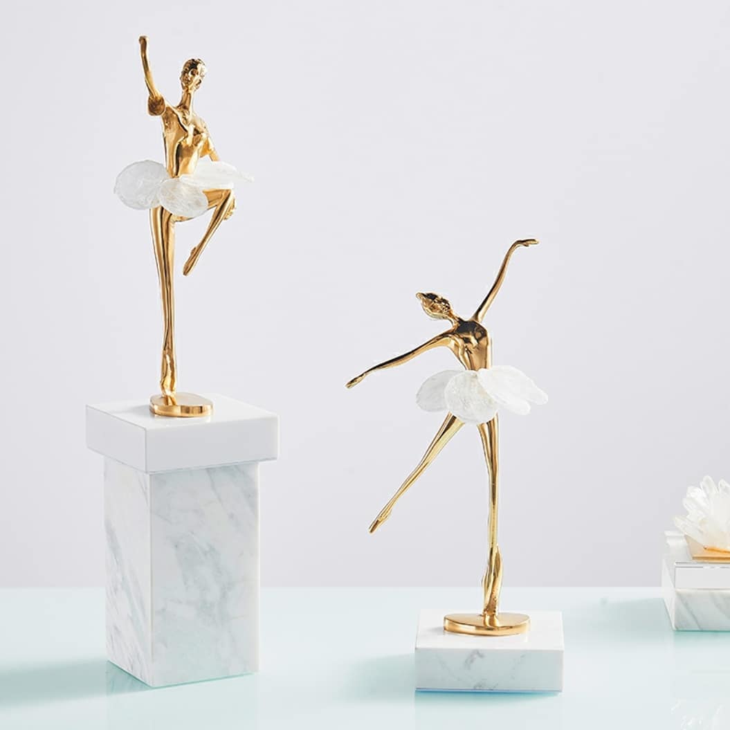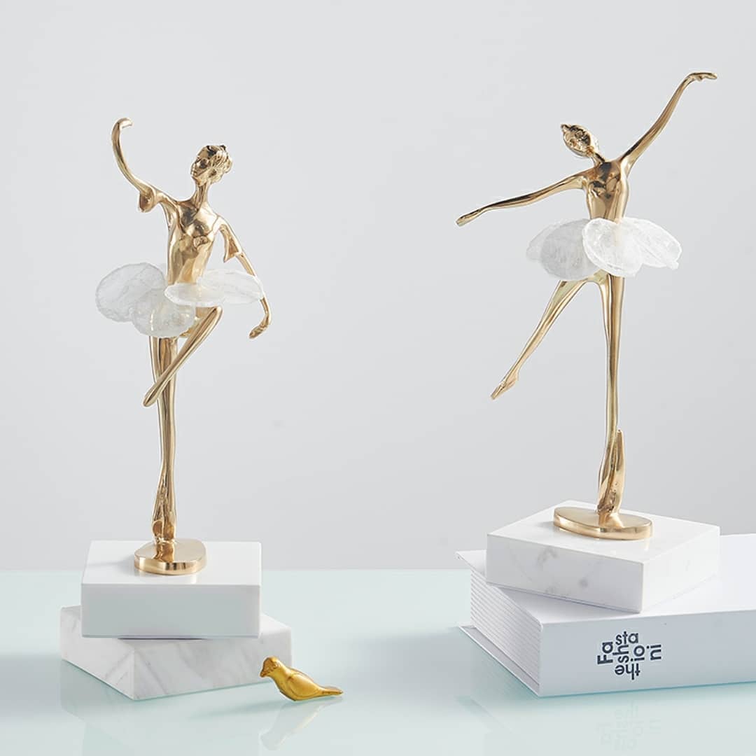 Красавицы-балерины в великолепных пачках из кристаллов кварца, на мраморных подставках. Благородная, блестящая латунь, отлитая в великолепные формы. Роскошный, вдохновляющий декор для вашего интерьера, который добавит в атмосферу красоты и возвышенных эстетических ноток.