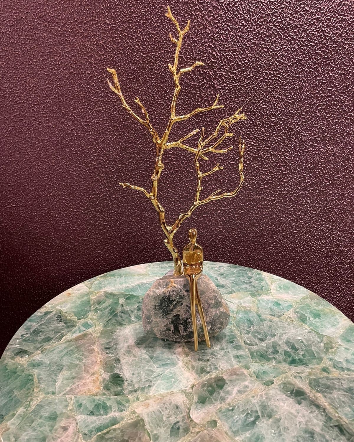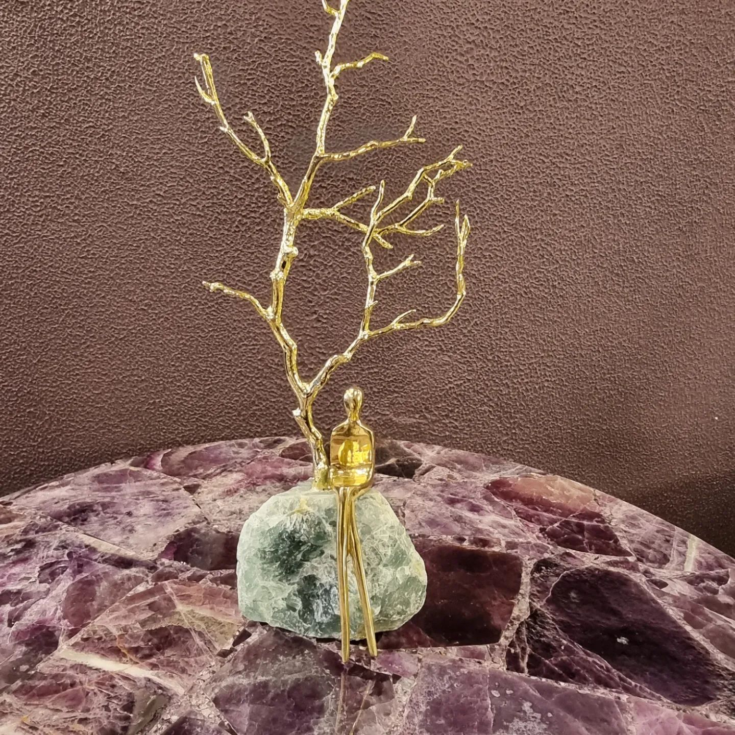 Латунь, флюорит. Человек под деревом. А все остальные смыслы – у каждого будут свои. В чём и ценность данной работы.