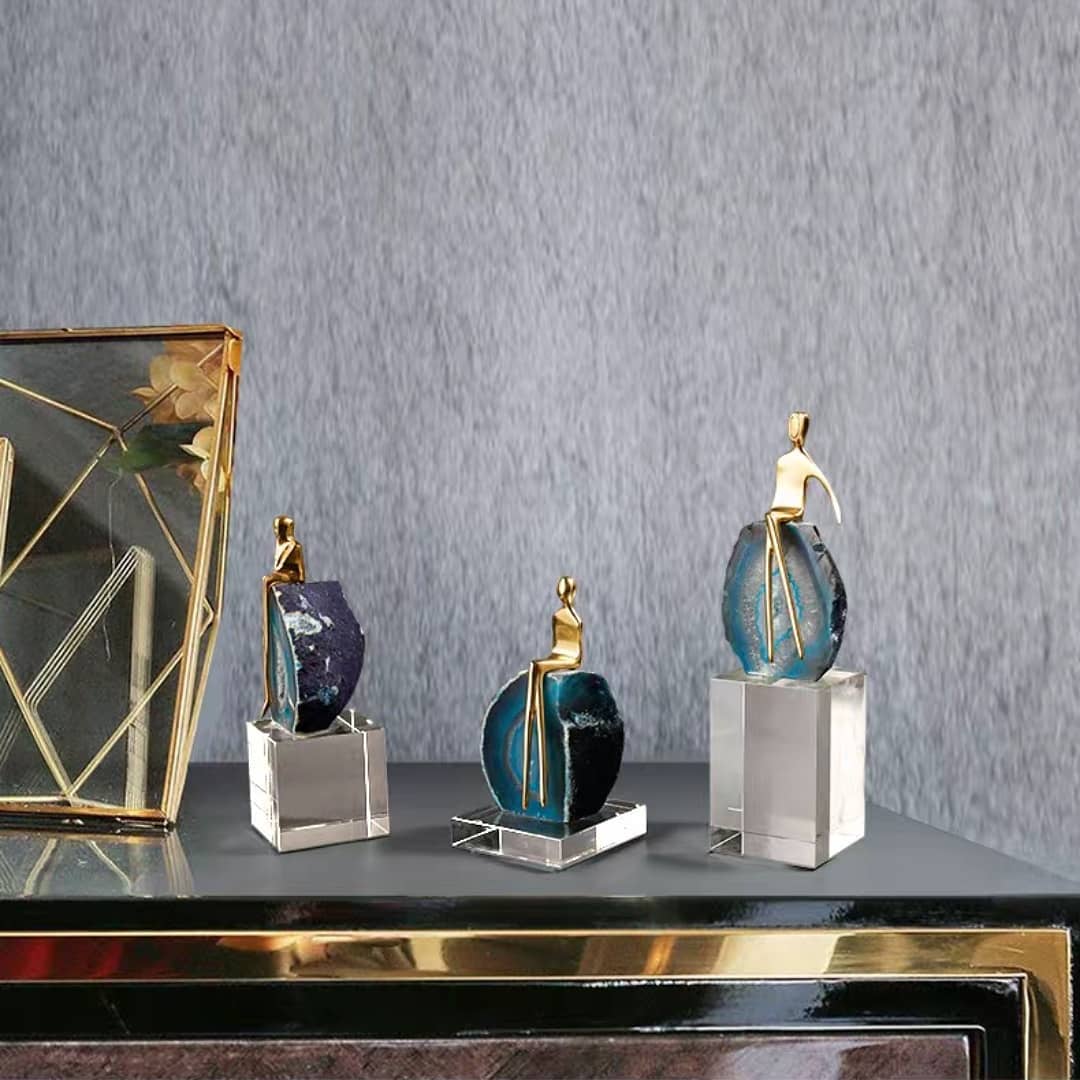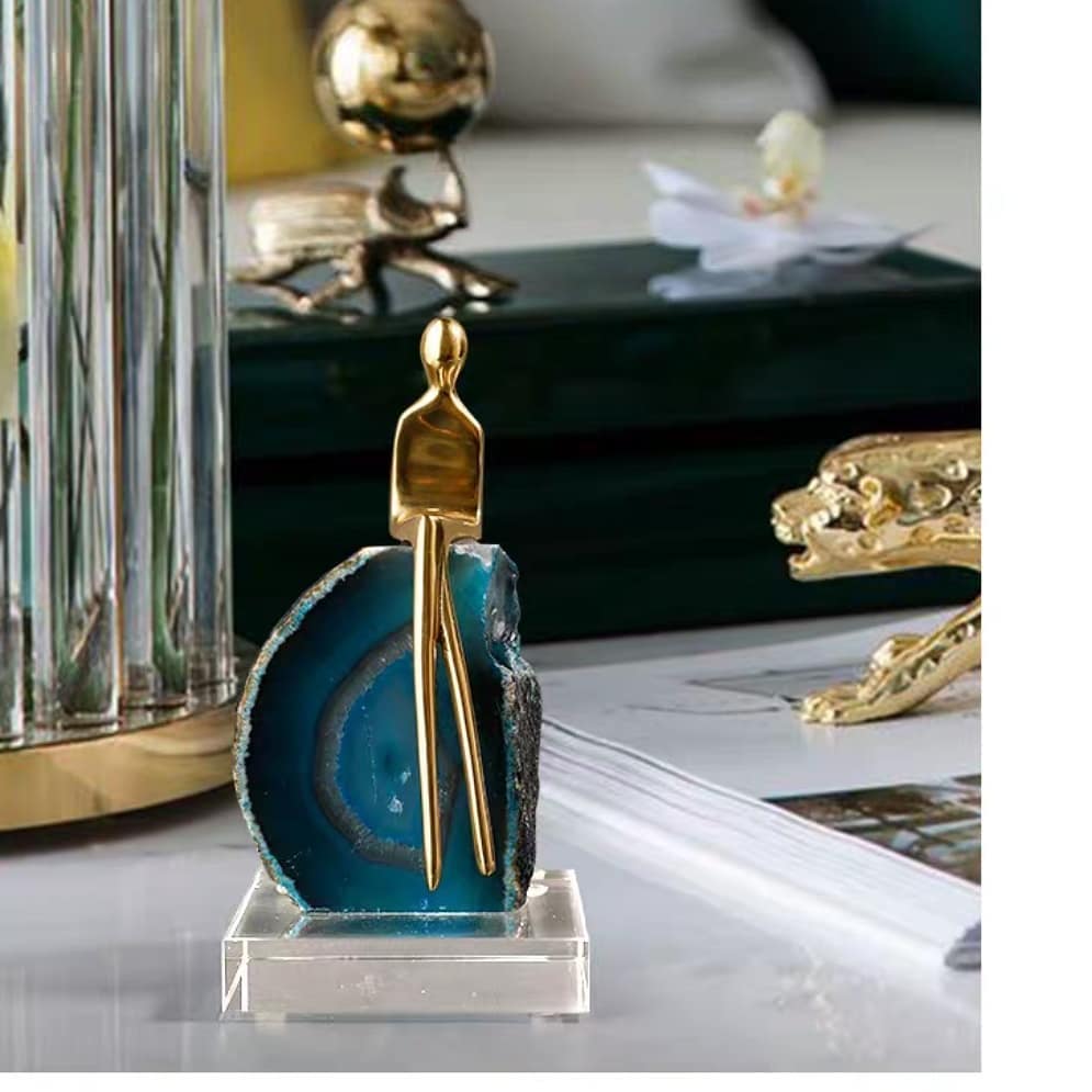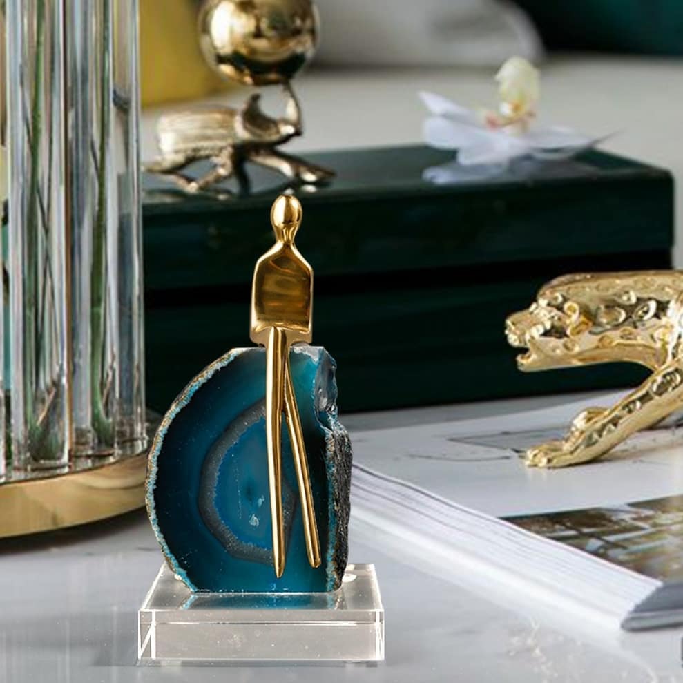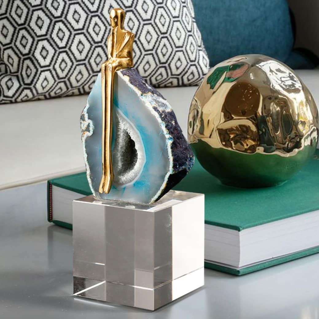 Человеческие фигурки из благородной латуни задумчиво восседают на срезах прекрасных агатов.