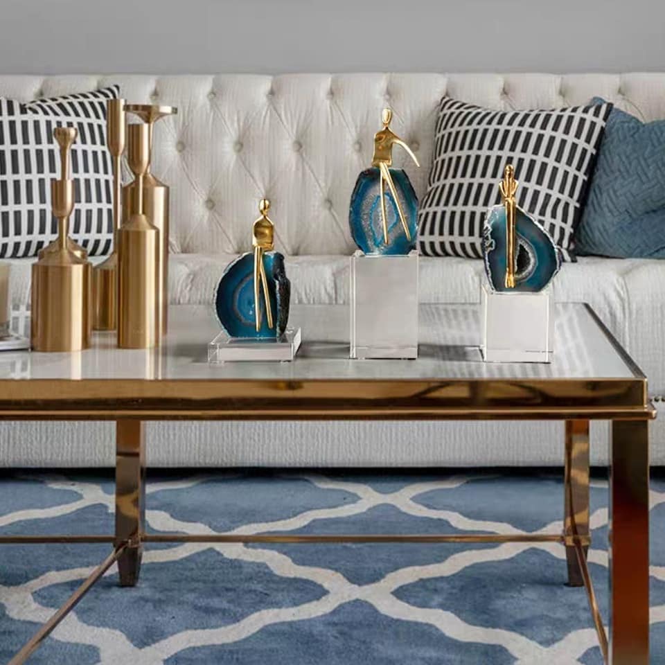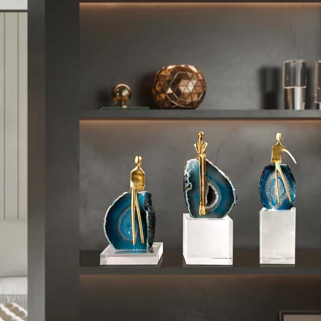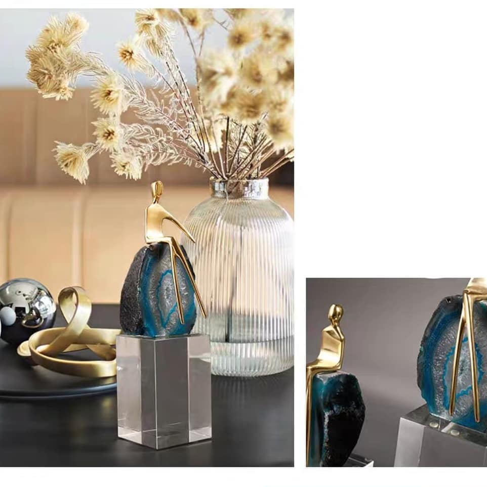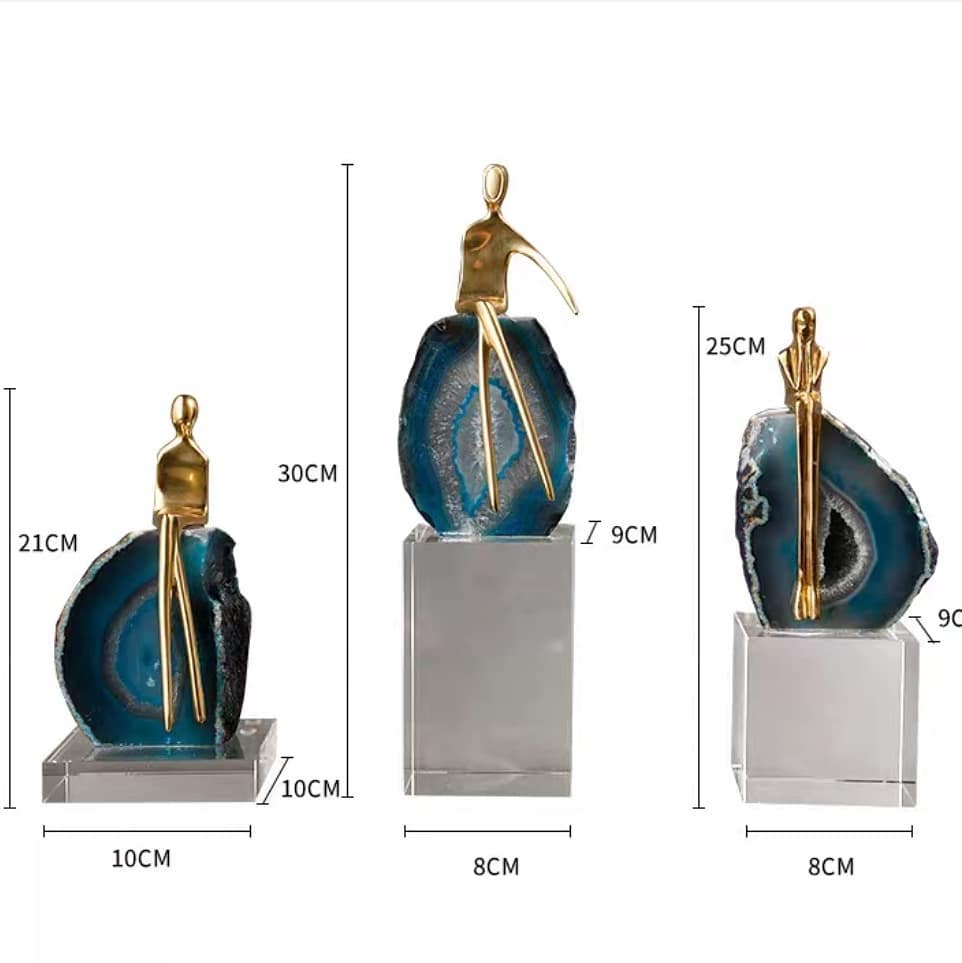 Человеческие фигурки из благородной латуни задумчиво восседают на срезах прекрасных агатов.