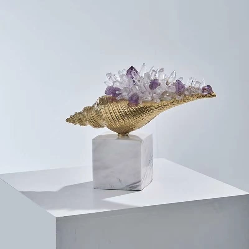 Очаровательный декор, с восхитительной светлой «аурой», которую щедро излучают натуральные кристаллы аметиста и горного хрусталя. Отпадно смотрится и в домашнем интерьере, на консольном столике, к примеру, и в коммерческом, да и на рабочем столе бизнес-леди такая вещь будет уместной.