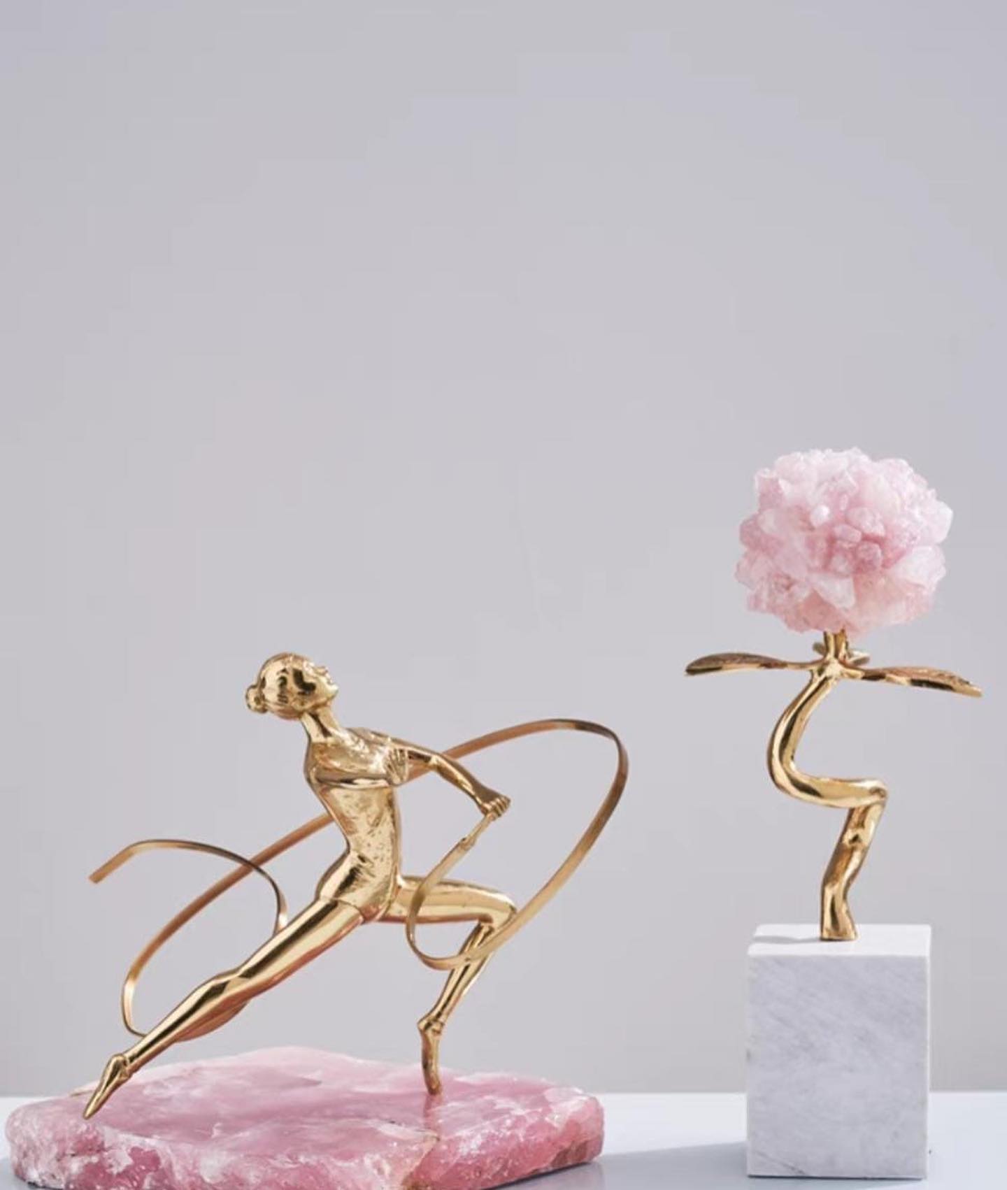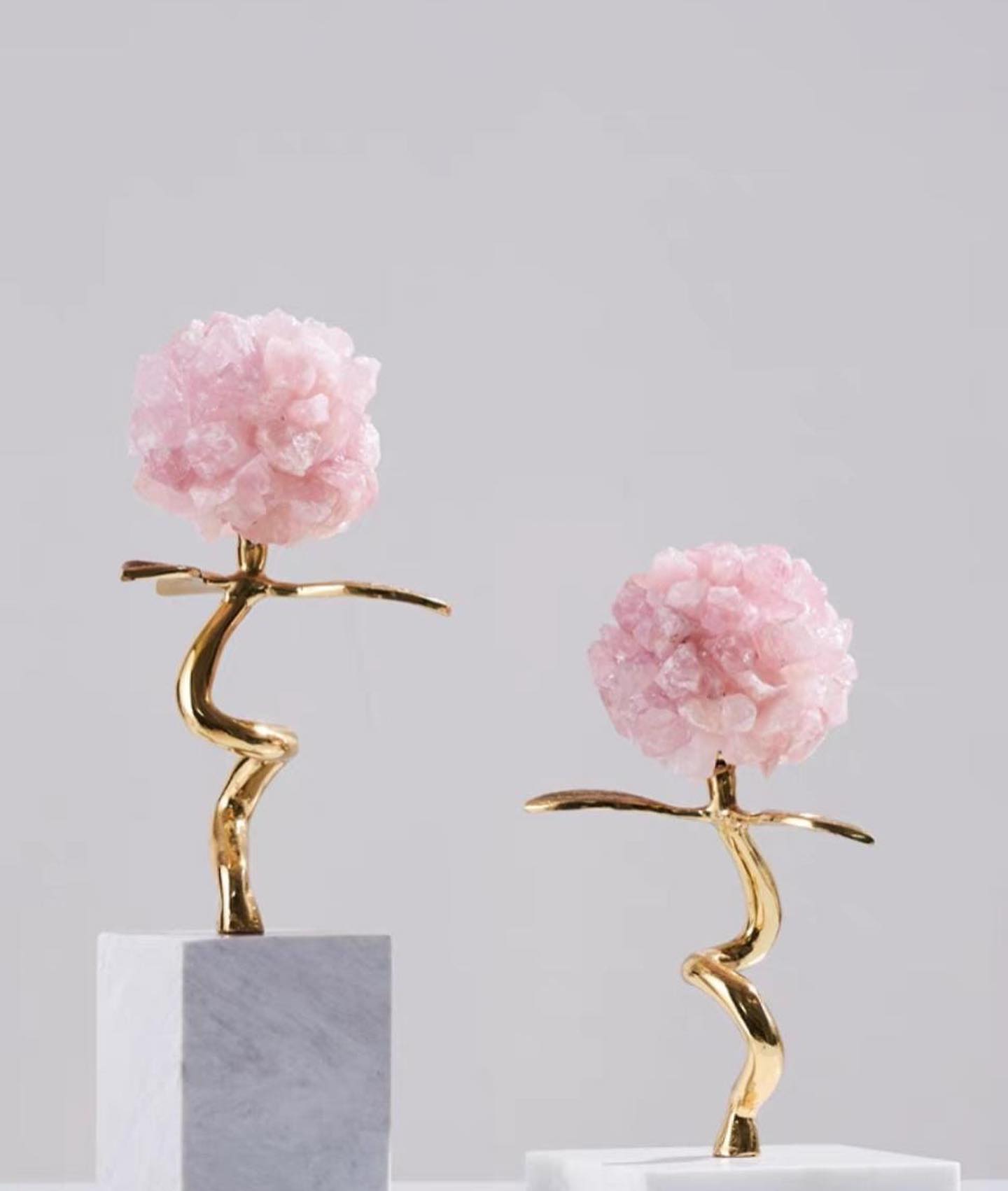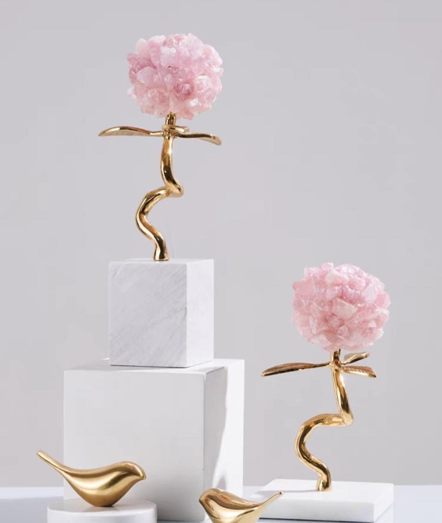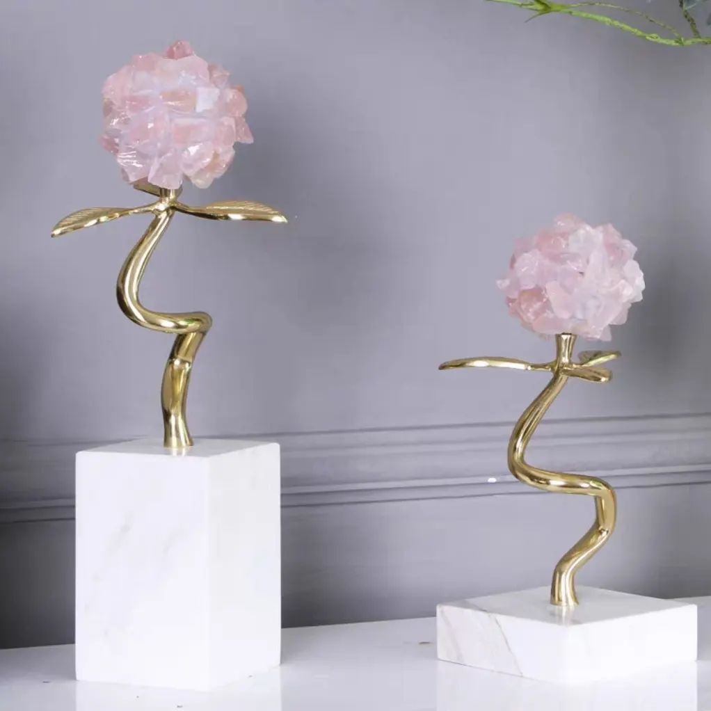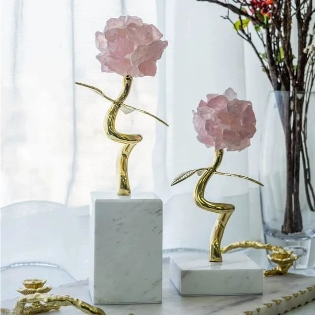 Изящный, позитивный декор премиум-качества для украшения современного, стильного интерьера. Натуральный мрамор, отборный розовый кварц, латунь.