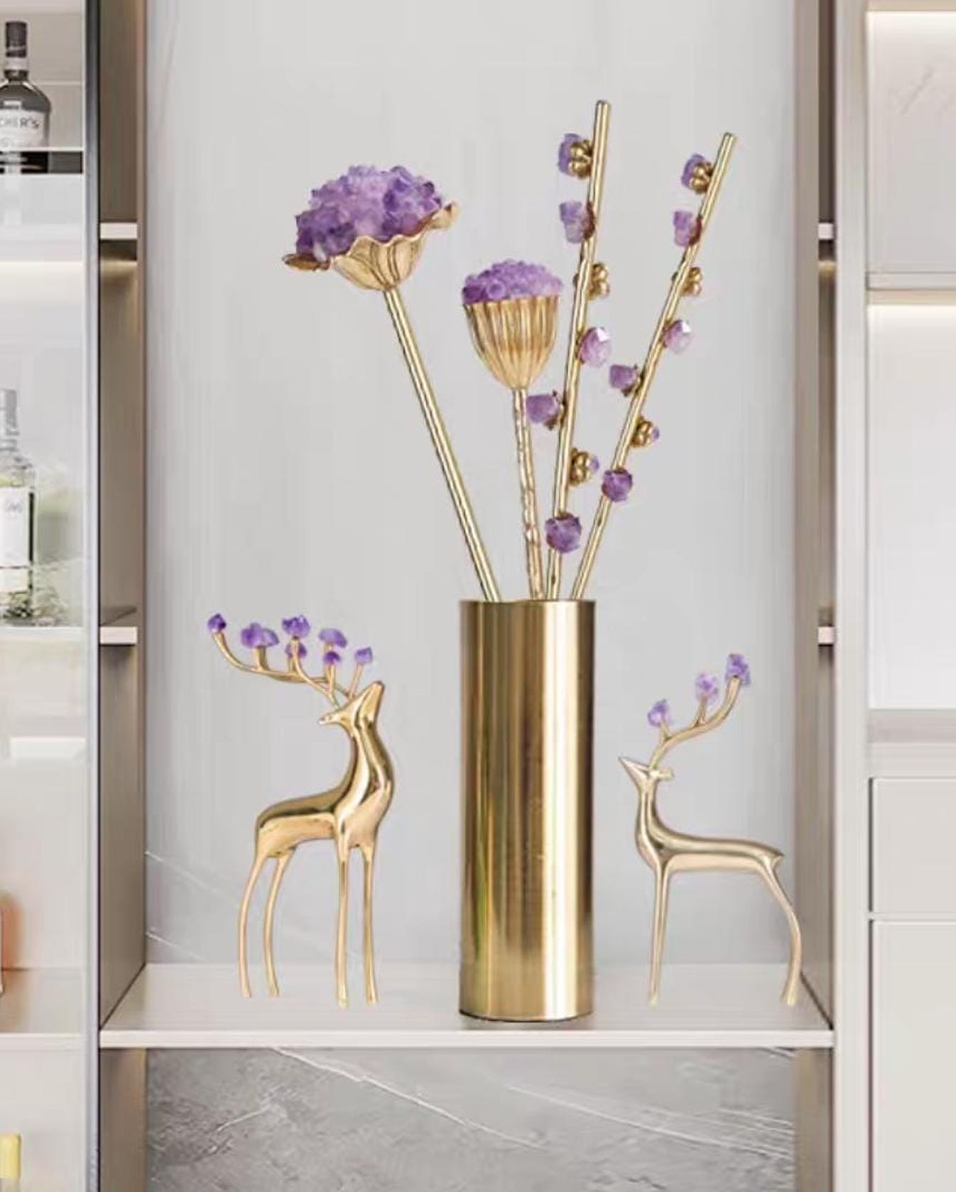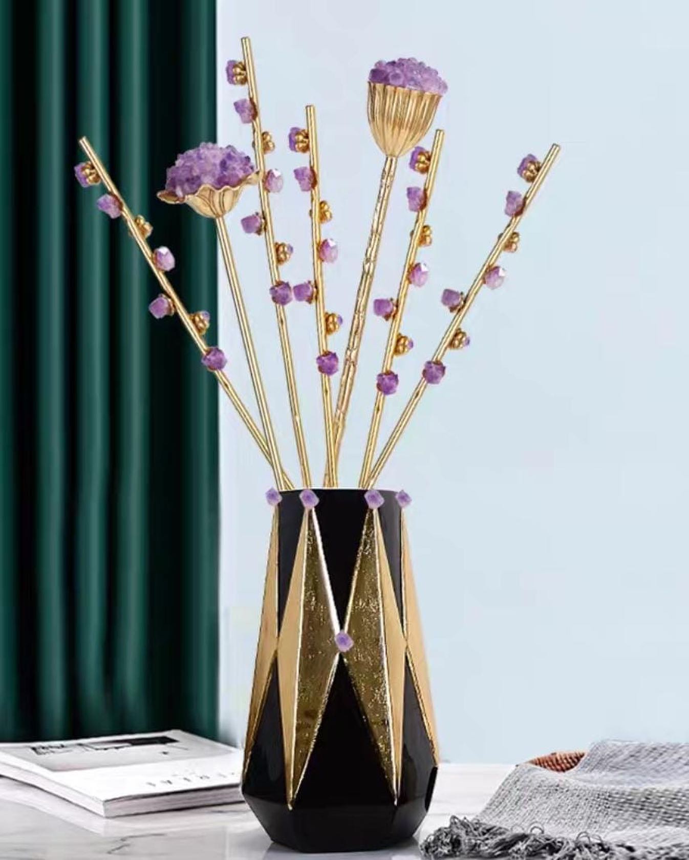 Отборные кристаллы аметиста прекрасно сочетаются с благородной латунью! В оранжерее Monsterior Gems пополнение – роскошные цветы, которые отлично впишутся в современный, статусный интерьер – домашний и (или) деловой. А ещё это прекрасный подарок, и его по достоинству оценят ваши любимые и близкие.