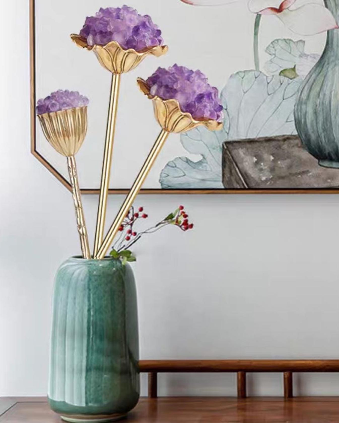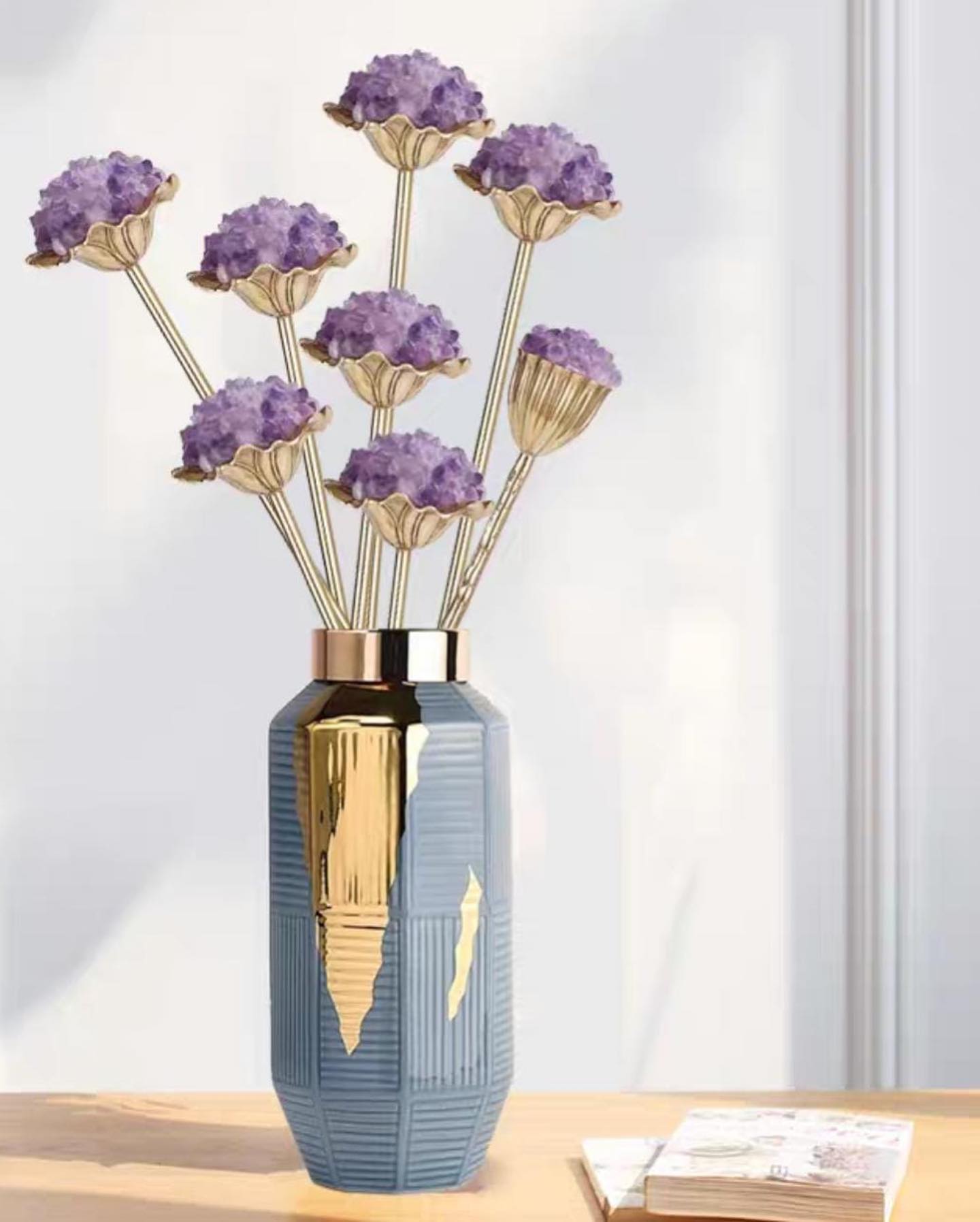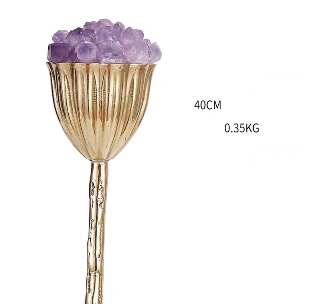 Отборные кристаллы аметиста прекрасно сочетаются с благородной латунью! В оранжерее Monsterior Gems пополнение – роскошные цветы, которые отлично впишутся в современный, статусный интерьер – домашний и (или) деловой. А ещё это прекрасный подарок, и его по достоинству оценят ваши любимые и близкие.