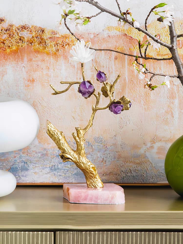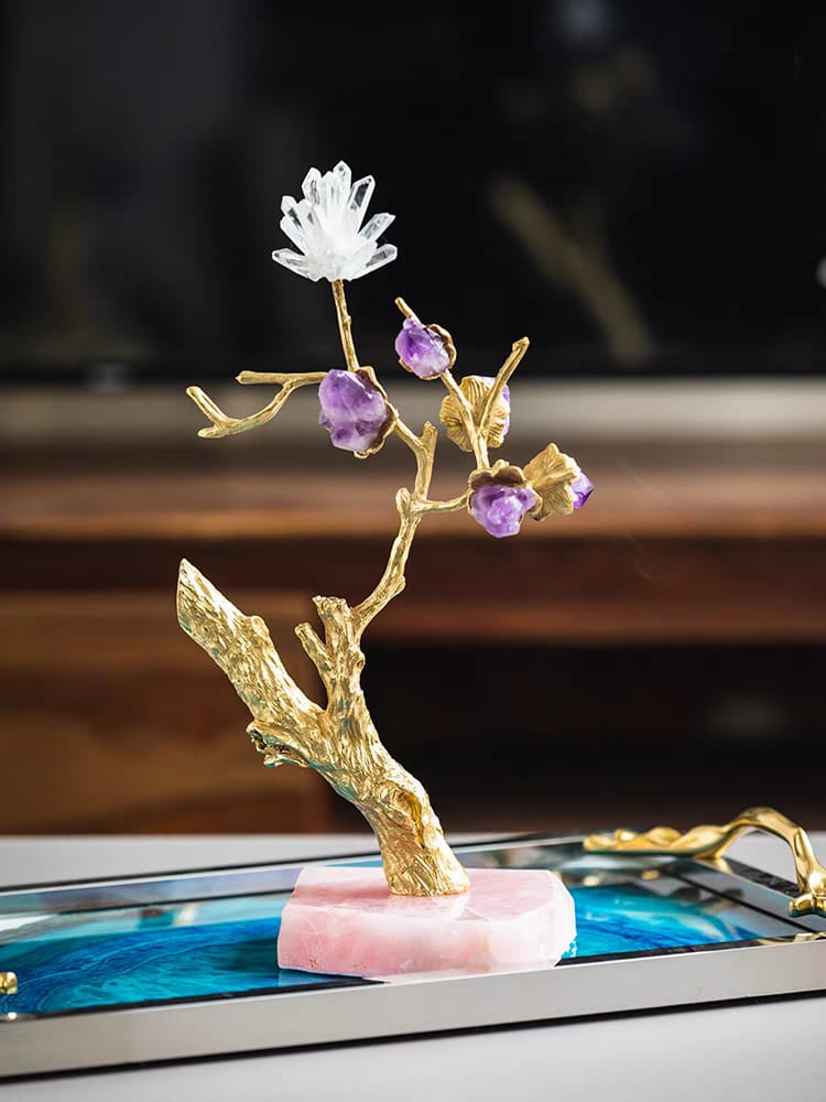 Стильный декор премиального качества для современного интерьера. Кристаллы горного хрусталя, аметиста, кварц, латунь.