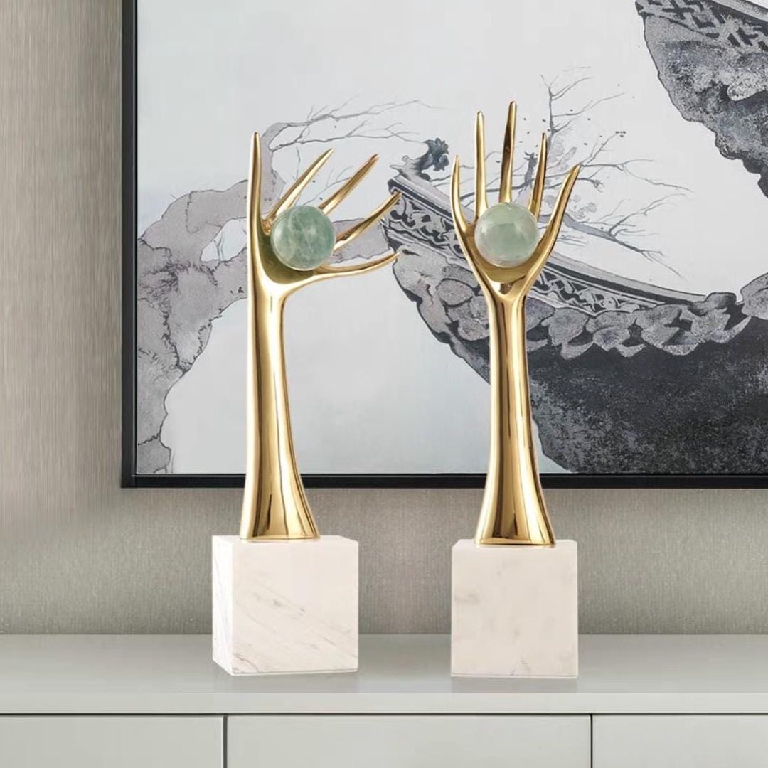 Изящные, дружелюбные руки, которые можно украсить вашими любыми цепочками, колечками и т.д. И они всегда будут под рукой. Красивый и полезный декор Monsterior Gems. Классное решение для современного, благородного интерьера. Отборный флюорит, натуральный мрамор, латунь.
