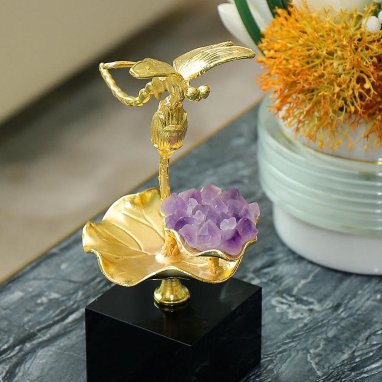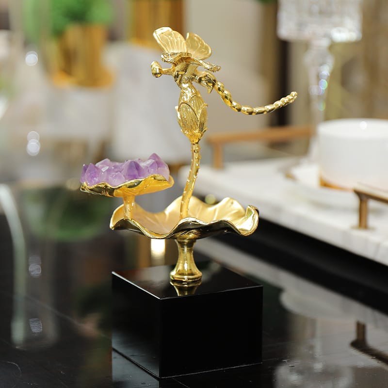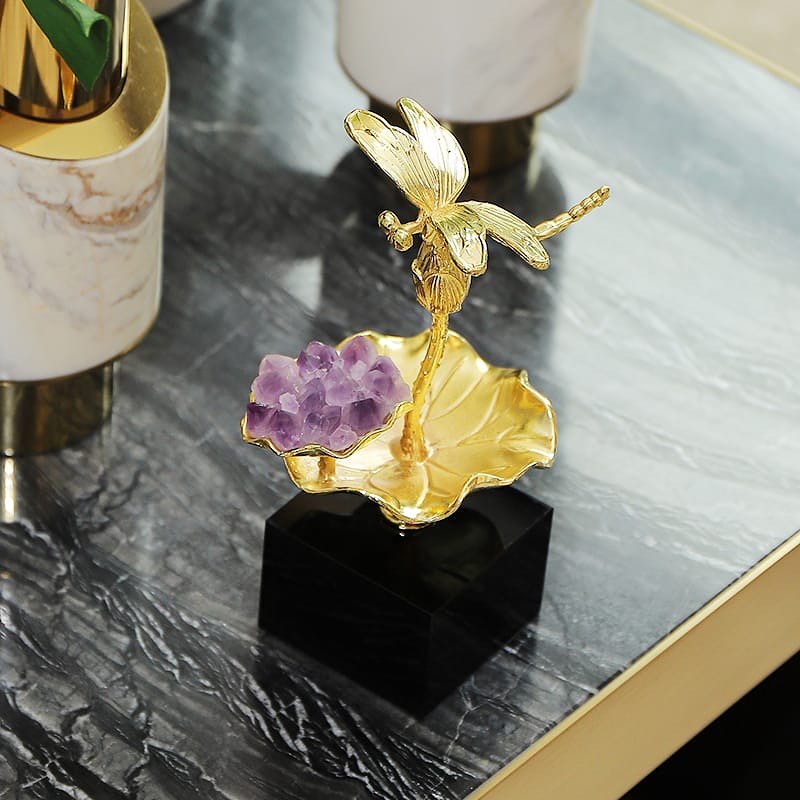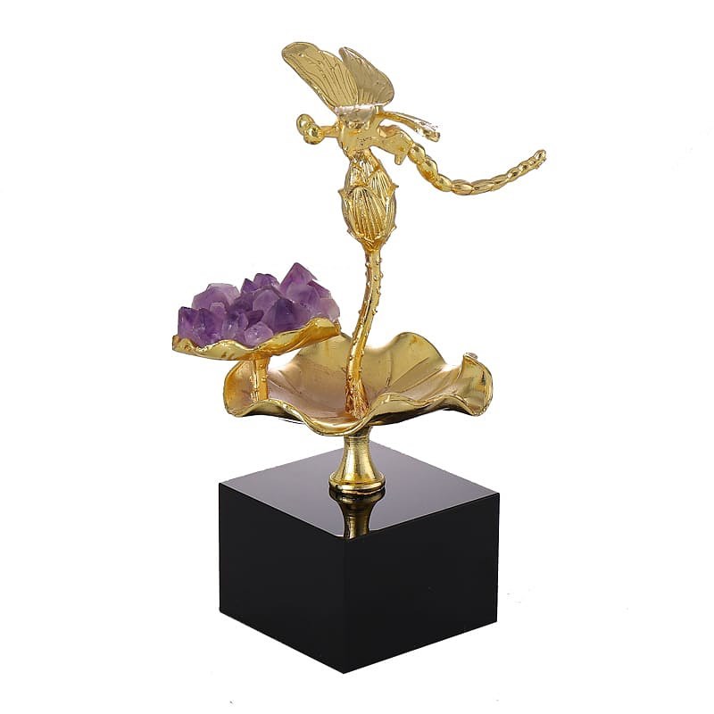 Статуэтка Стрекоза на цветке лотоса с аметистом