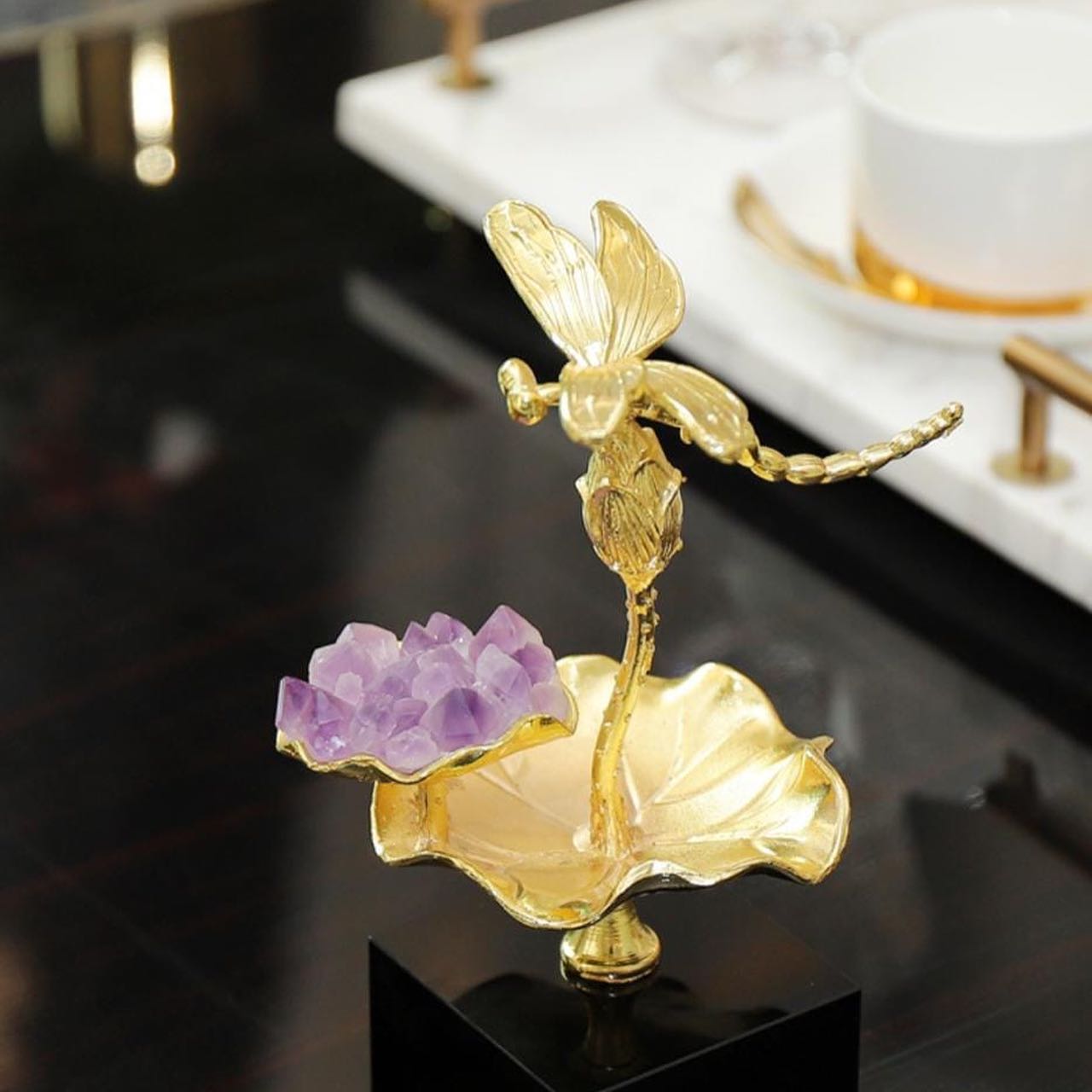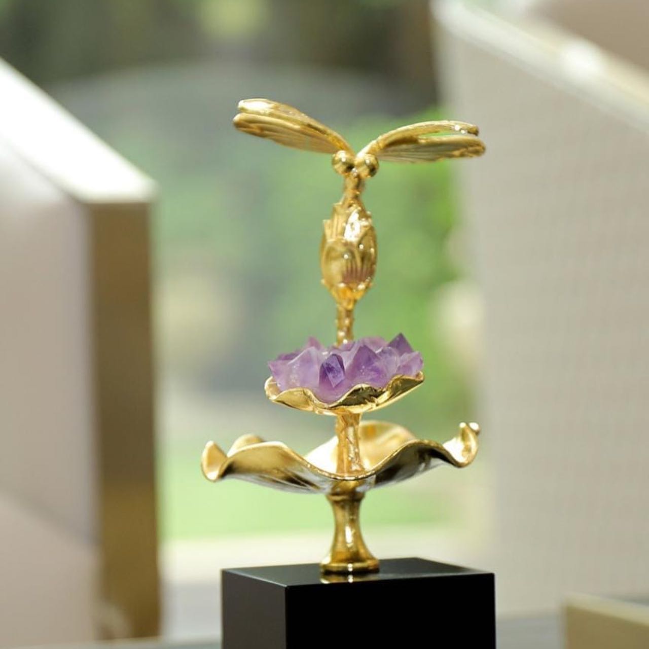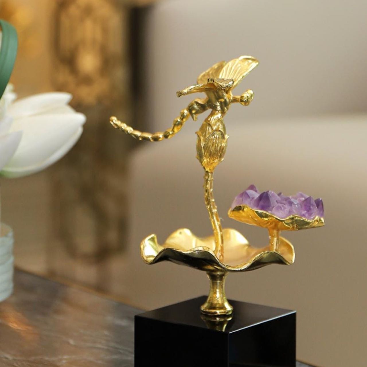 Статуэтка Стрекоза на цветке лотоса с аметистом