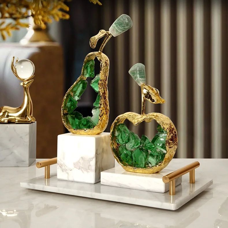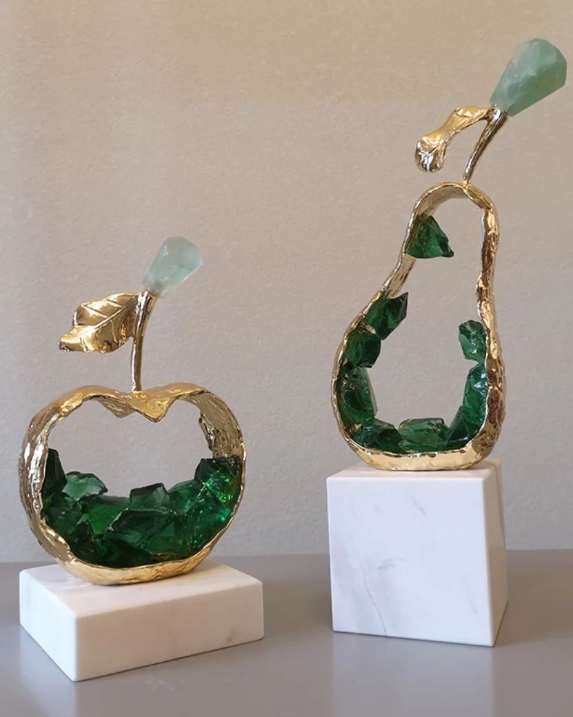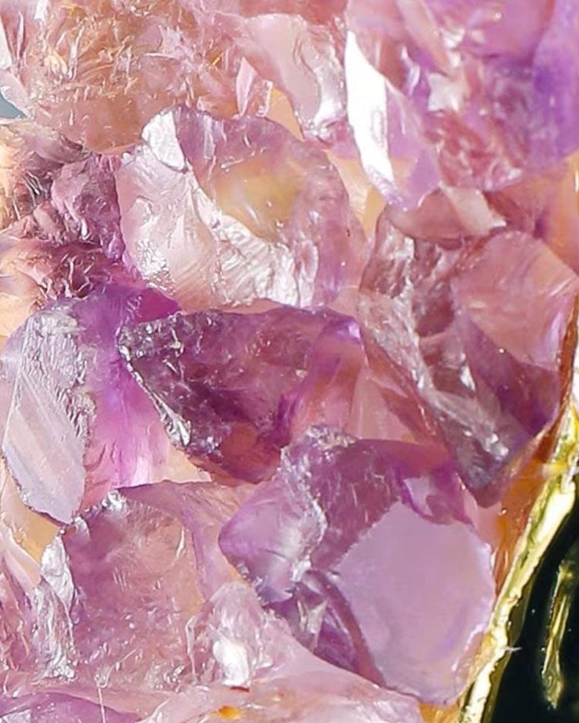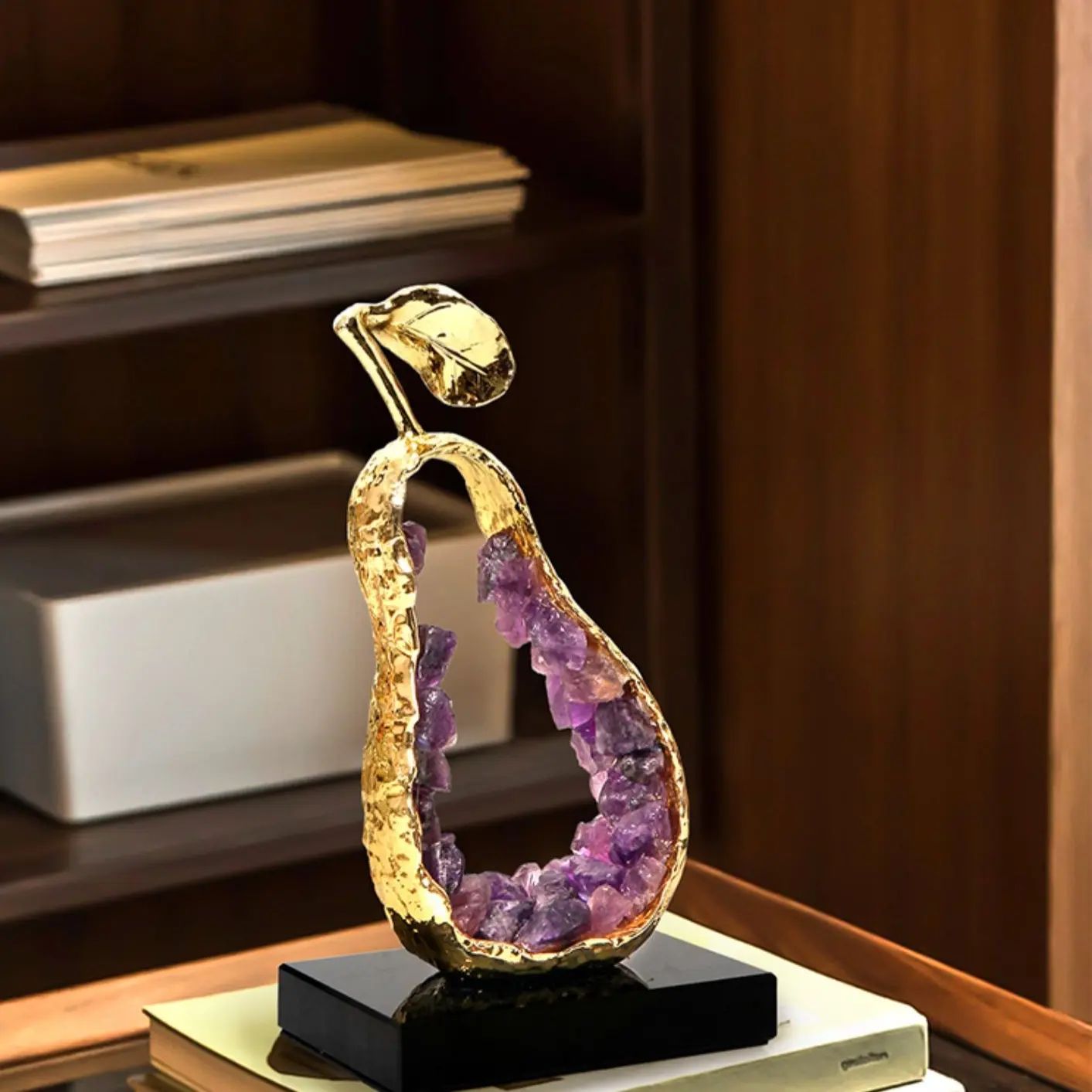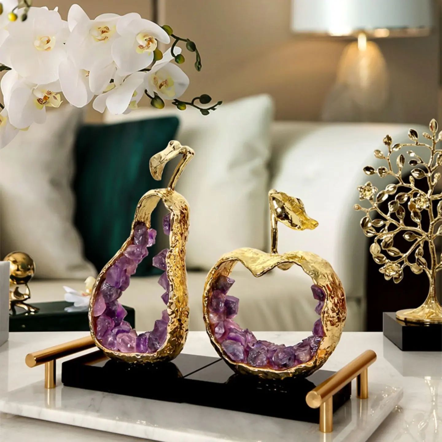 Очаровательный «фруктовый» декор Monsterior Gems! Изящное решение для стильного украшения современного, яркого интерьера – домашнего и (или) делового, коммерческого. Специально обработанная руда, отборные кристаллы аметиста, подставка – натуральный мрамор.