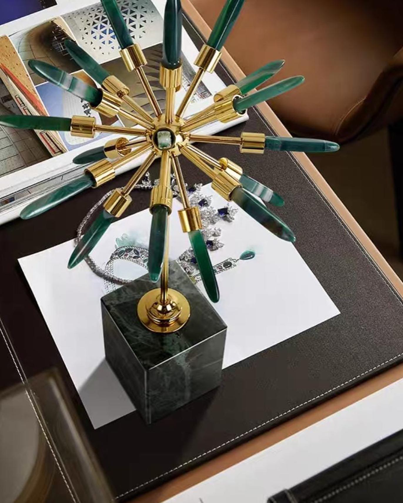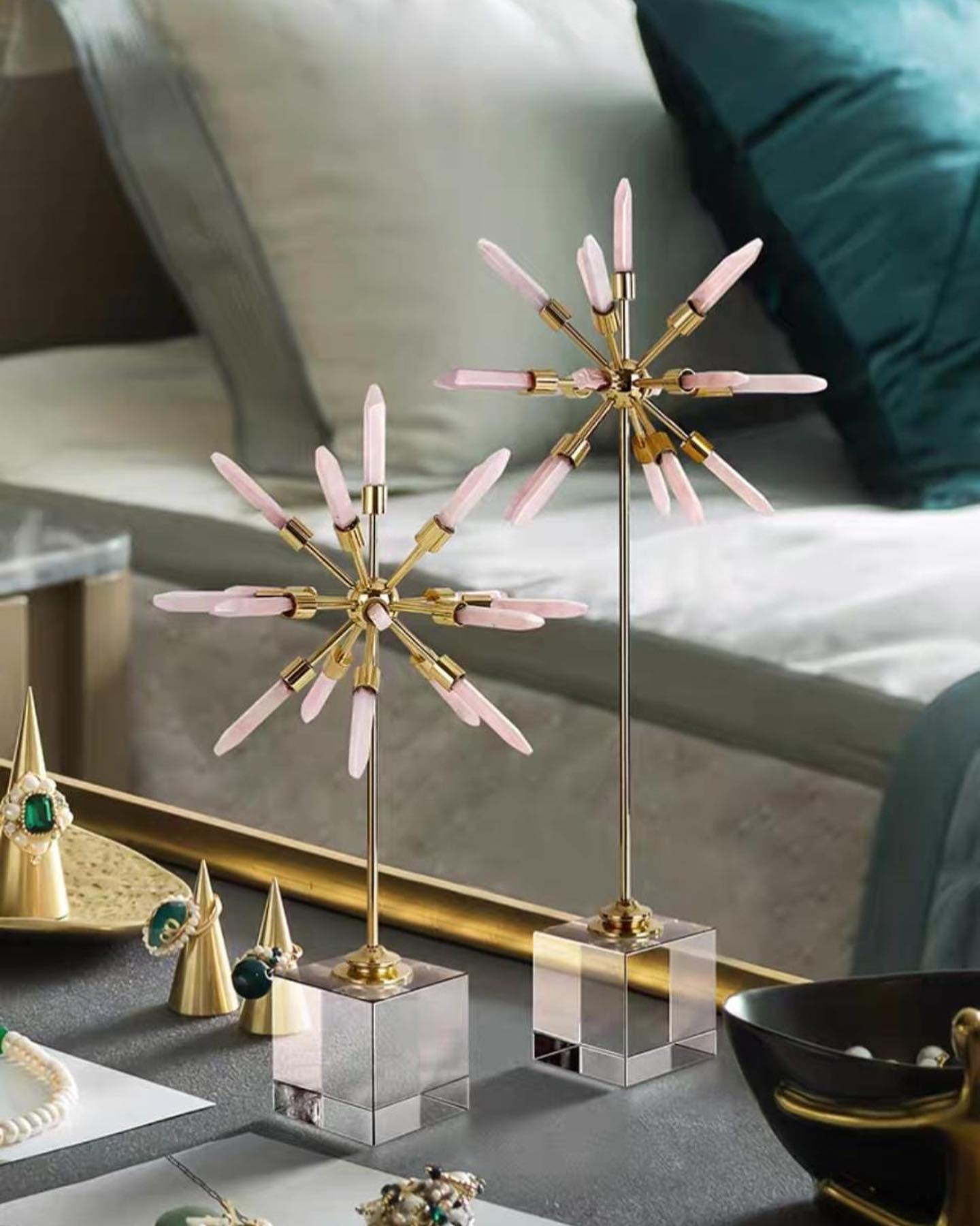 Благородная латунь, натуральный мрамор, отборные кристаллы розового кварца, чистейшего горного хрусталя, кианита и агата, на выбор.