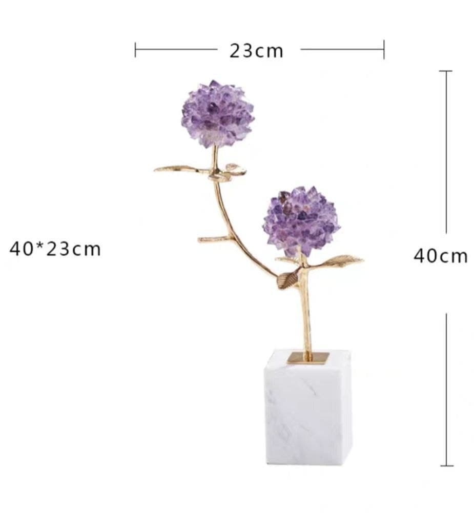 Благородная латунь, отборные кристаллы аметиста, натуральный мрамор.