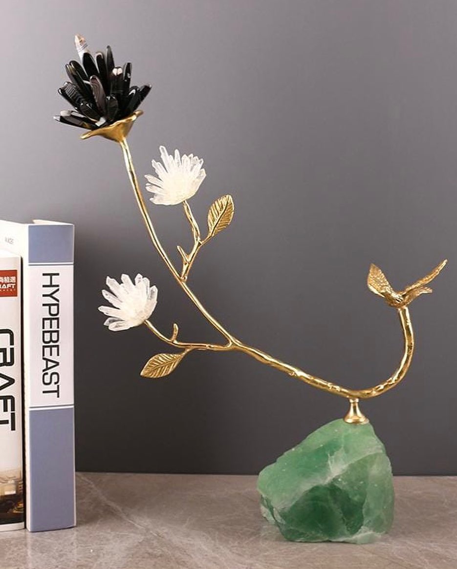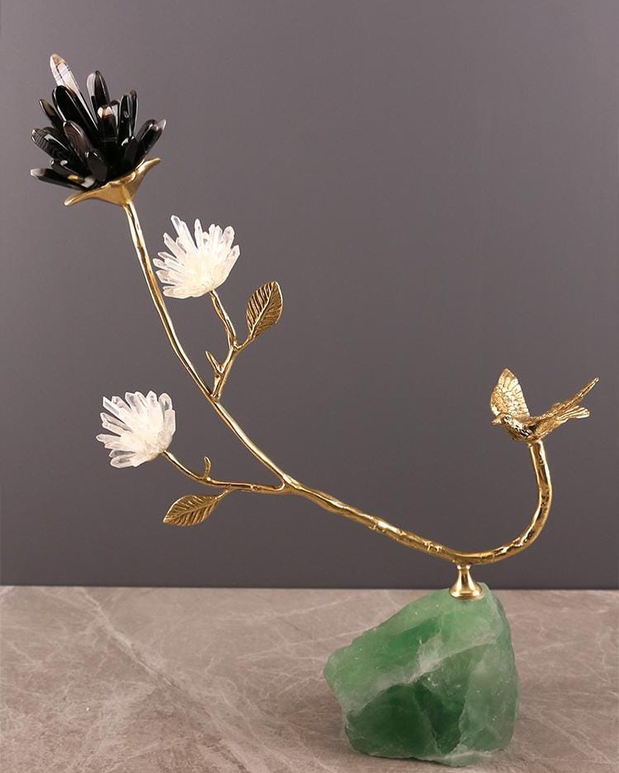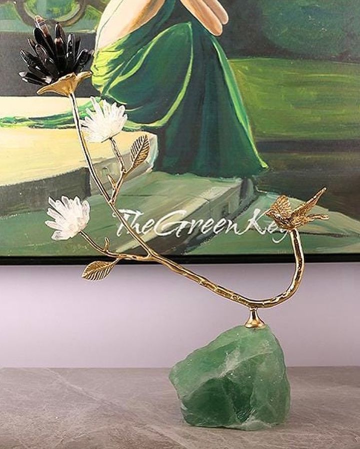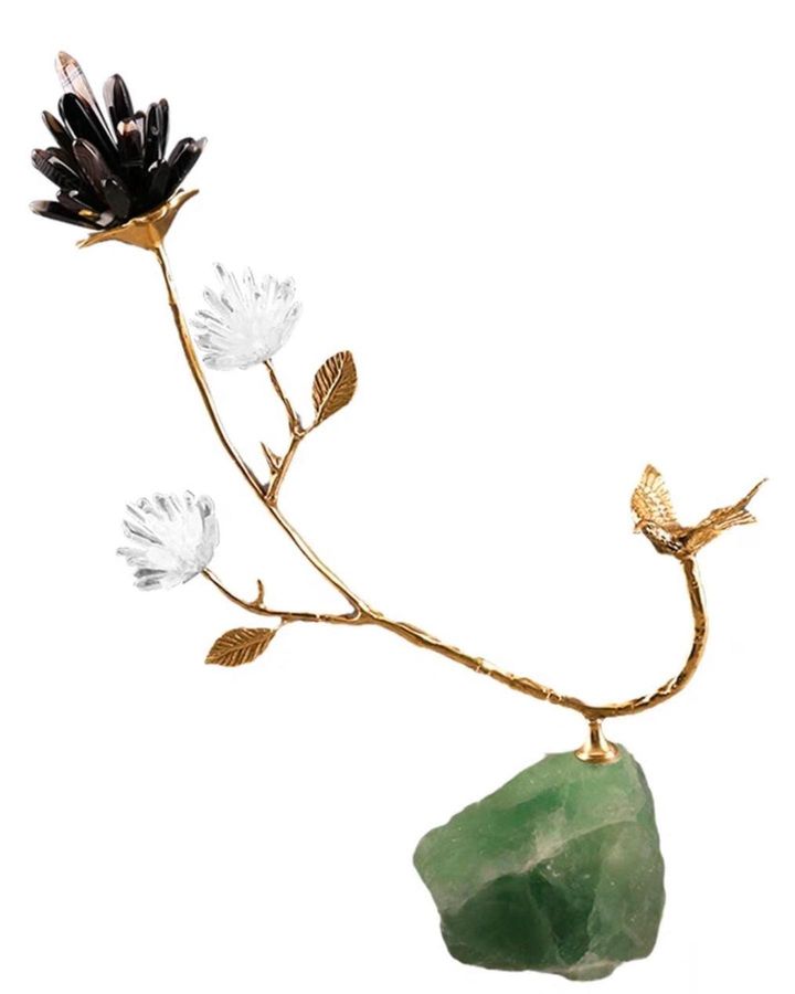 Изящный цветок из оранжереи Monsterior Gems! Очаровательный декор для уникального, стильного интерьера. Благородная латунь, отборный горный хрусталь, агат и флюорит. Отличное украшение и позитивная магия самоцветов в вашем личном пространстве – домашнем и (или) деловом, офисном.