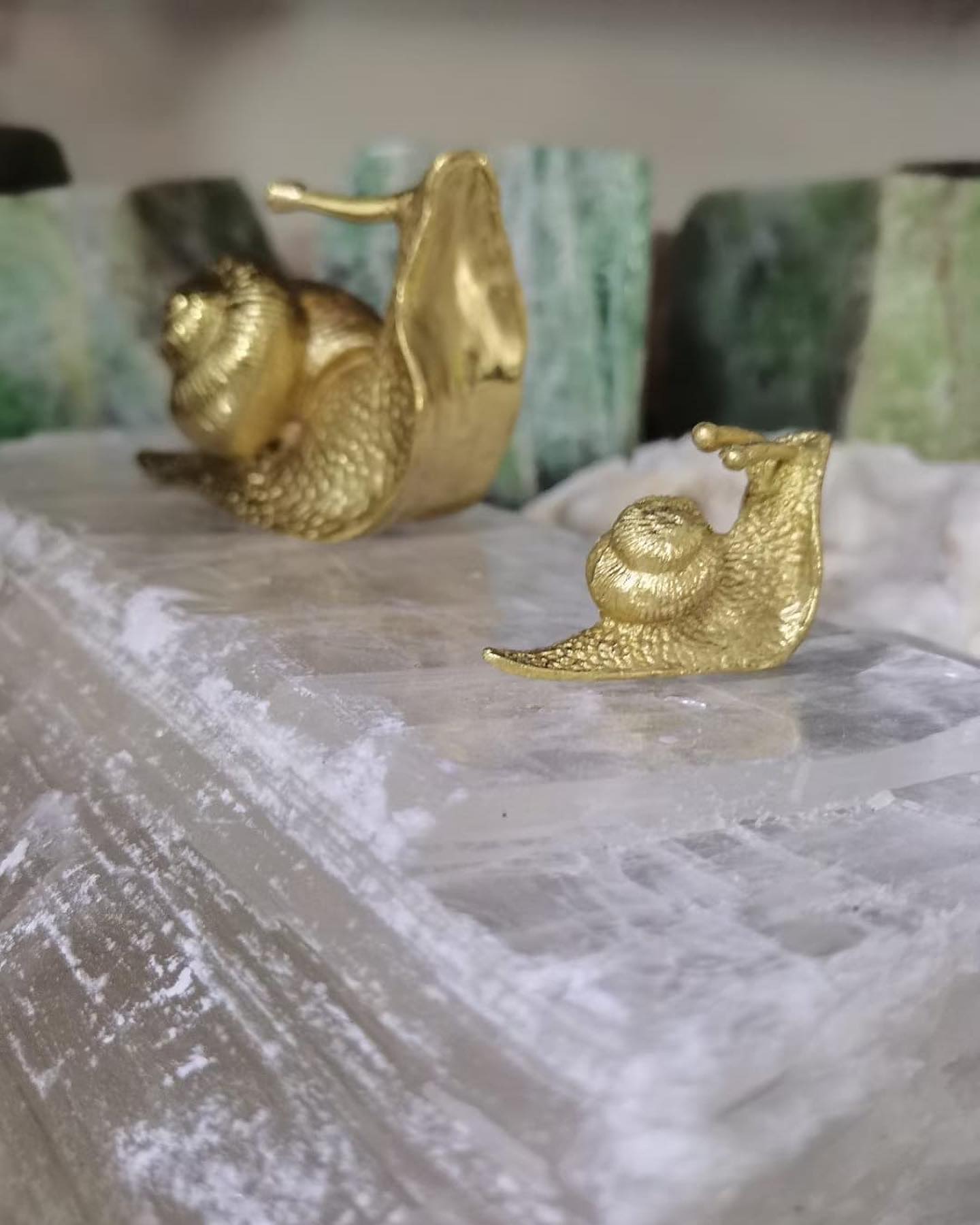 Стильные улиточки Monsterior Gems из благородной латуни, на подставке из натурального кварца. Очаровательный декор для современного, уникального интерьера –домашнего и (или) рабочего, делового. Отличное напоминание о том, что надо поспешать медленно!