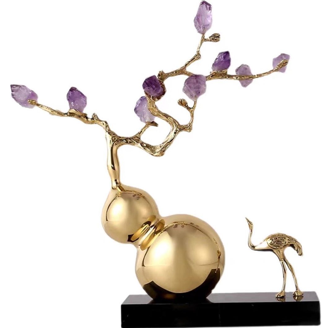 Роскошный вариант тыквы-горлянки – восточного, древнего и действенного символа благосостояния, удачи и здоровья. Прекрасный талисман и декор для современного, стильного интерьера. Благородная латунь, натуральный мрамор; отборные кристаллы аметиста, камни агата, на выбор.