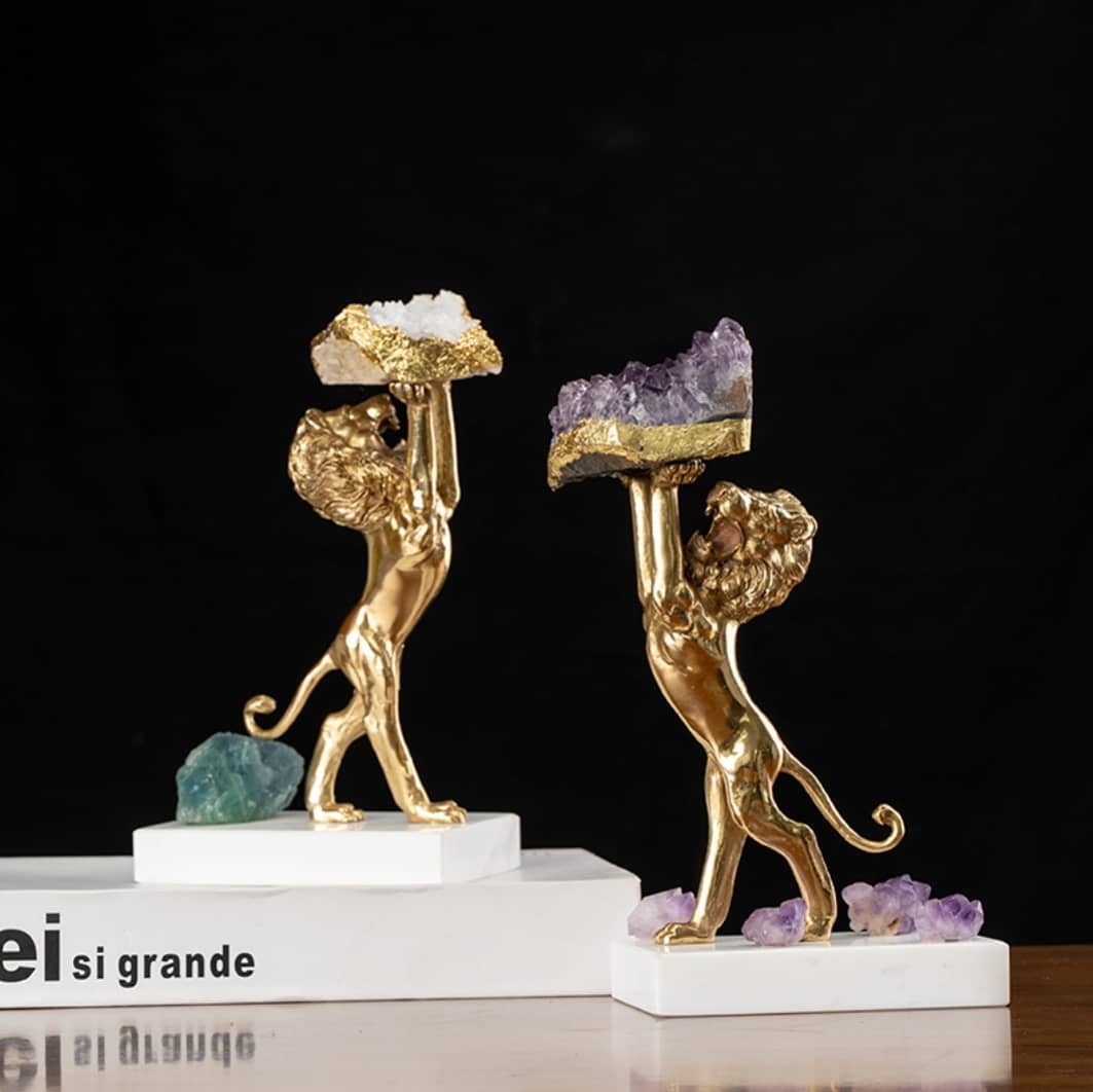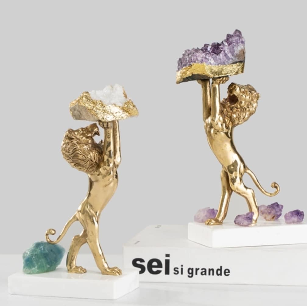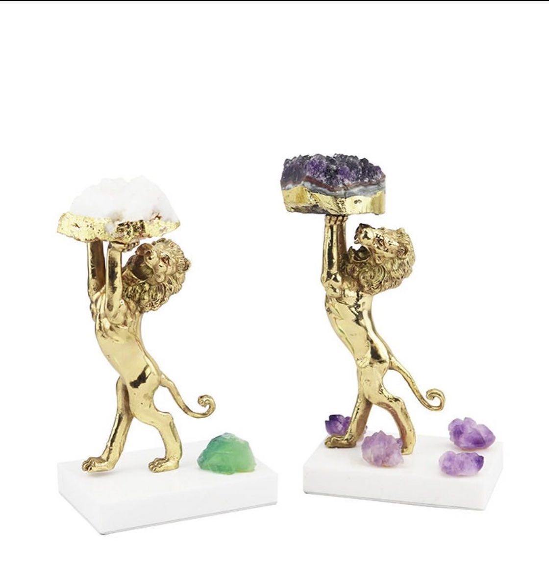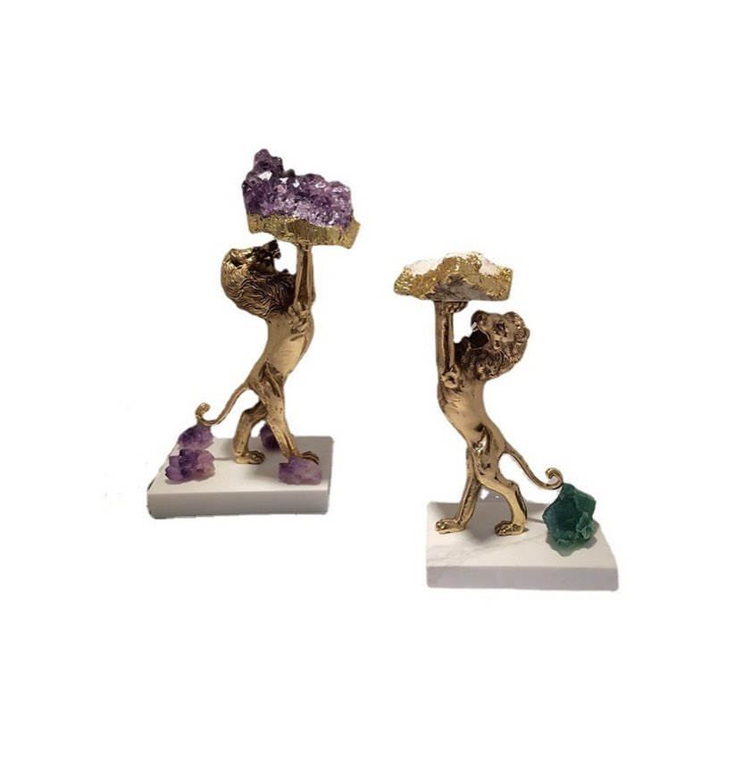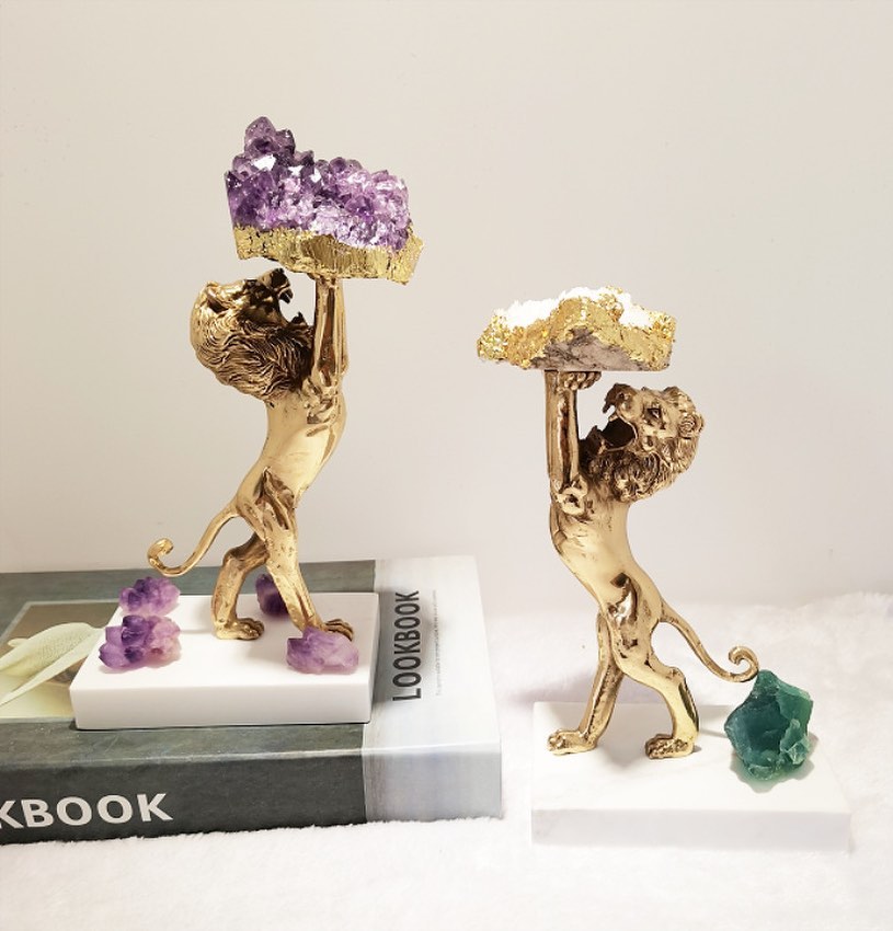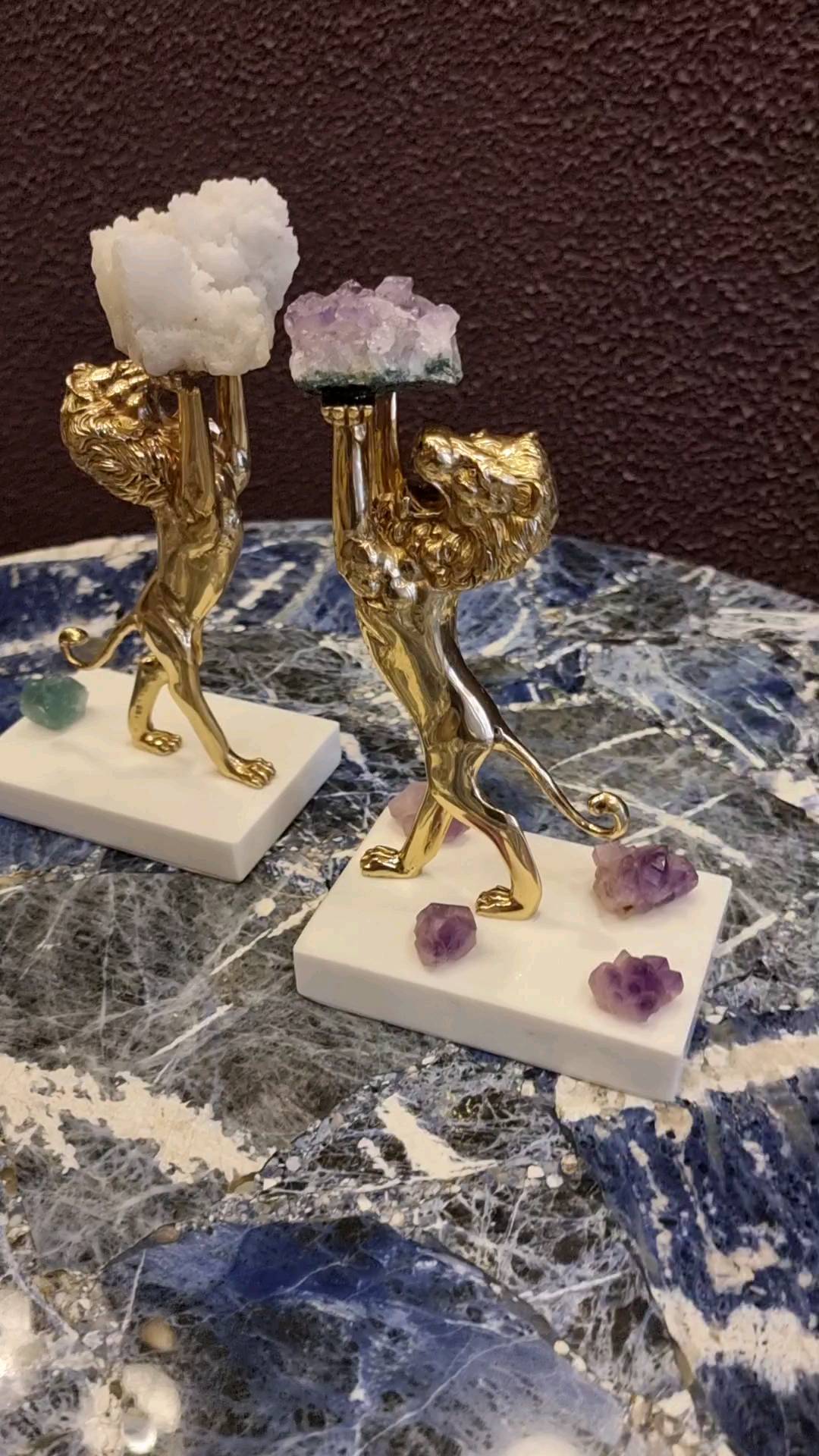 Очаровательный декор для всех, и классный подарок для людей, рожденных под знаком огненного и энергичного Льва. Белоснежный мрамор, благородная латунь, отборные кристаллы аметиста, кварца и т.д. Отличное решение для украшения интерьера – домашнего и (или) делового!