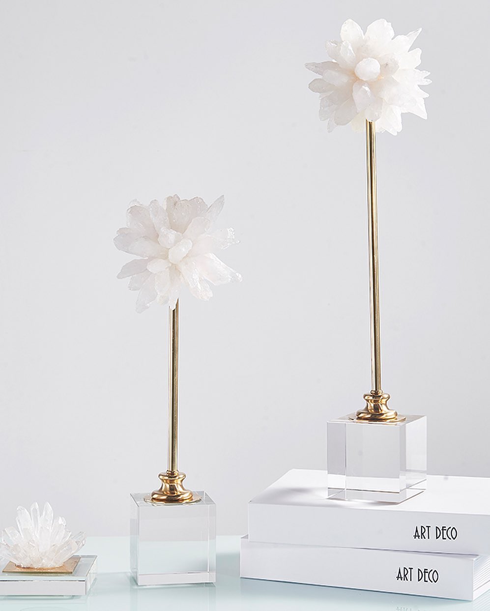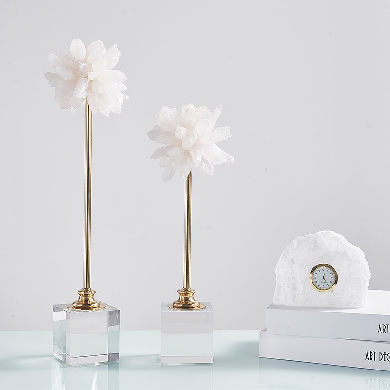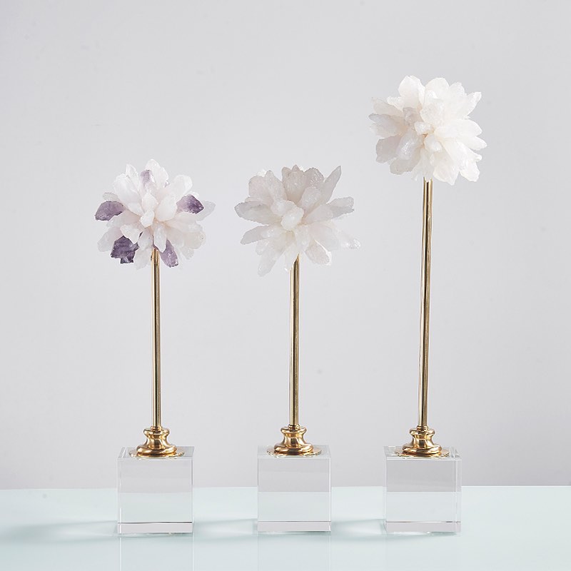 Прекрасный декор Monsterior Gems – белоснежно-кварцевый или с нежными вкраплениями кристаллов отборного аметиста. Очаровательные цветы на «стебельках» из благородной латуни.