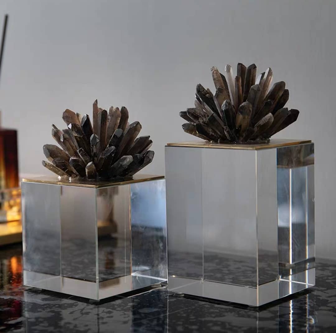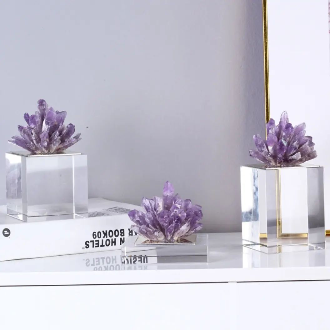 Натуральные, отборные кристаллы аметиста и селенита, на выбор, на подставке из чистейшего хрусталя. Для поклонников литотерапии – отличное украшение, с антинегативным эффектом – считается, что кристаллические «ёжики» нейтрализуют внешний негатив. Для тех, кто ценит изящные и качественные вещицы в интерьере, отличный вариант сделать свое личное пространство ещё более ярким и интересным.