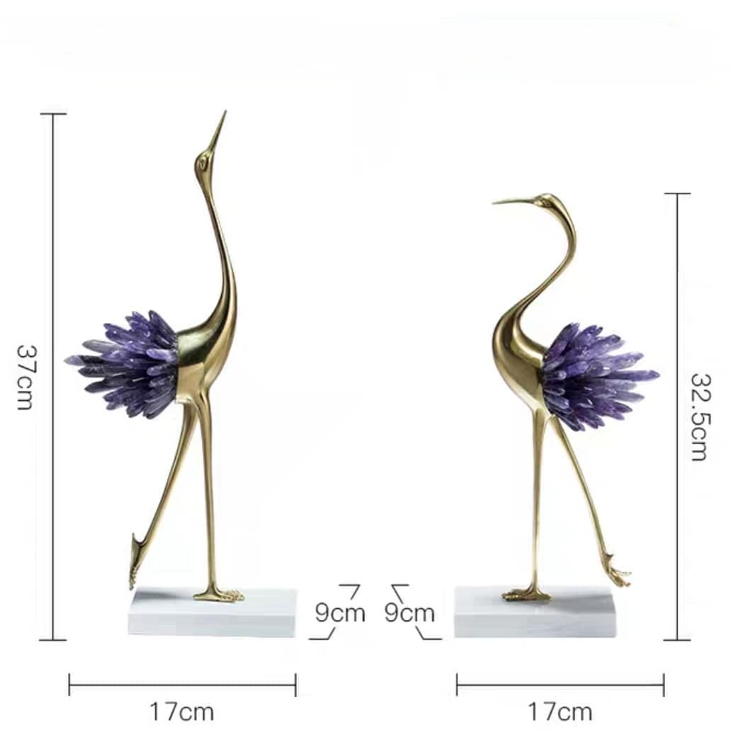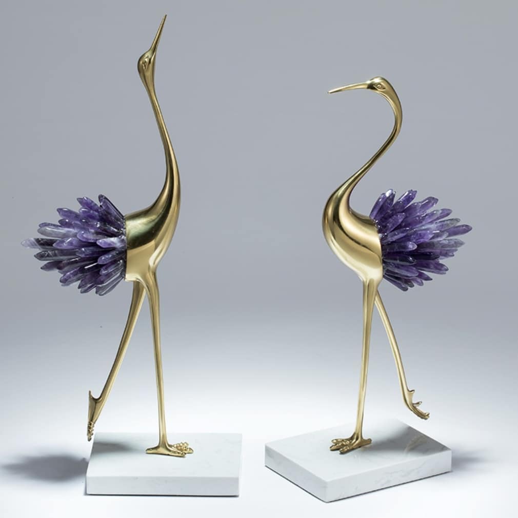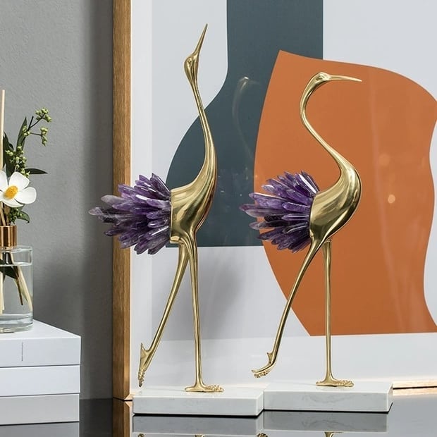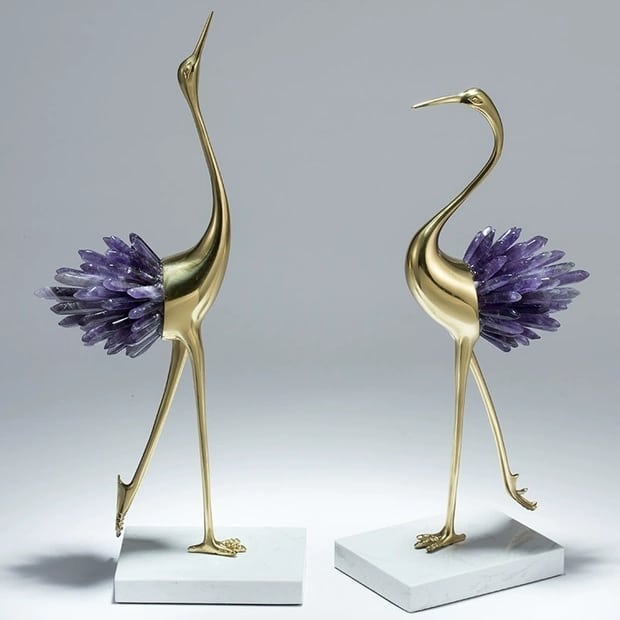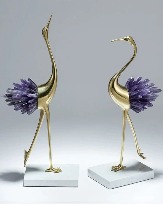 Грациозные красавицы-цапли из благородной латуни и натуральных, отборных кристаллов аметиста. Изящный декор, который ярко украсит ваш интерьер – домашний и (или) деловой. Отличное решение для ценителей классных, очаровательных вещей в личном пространстве.