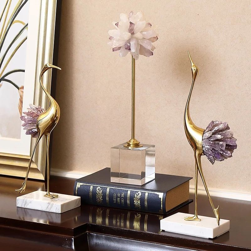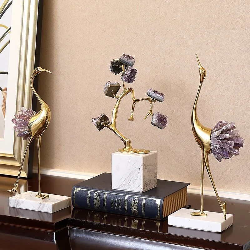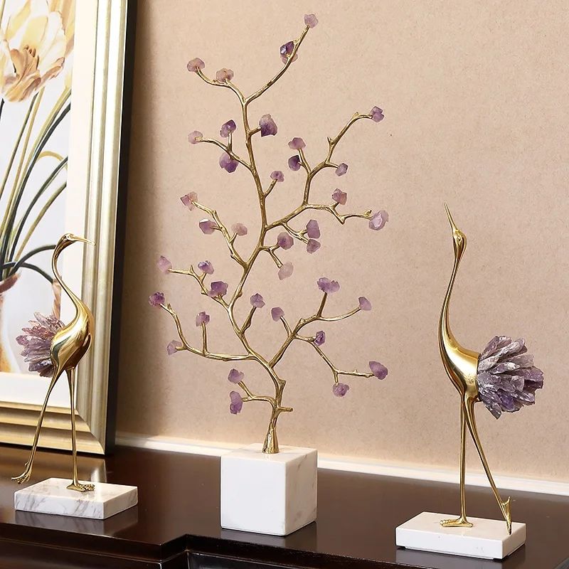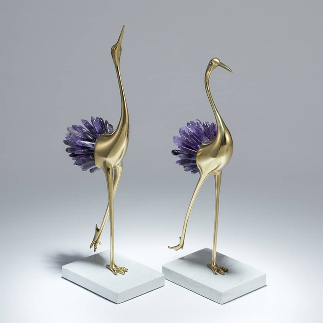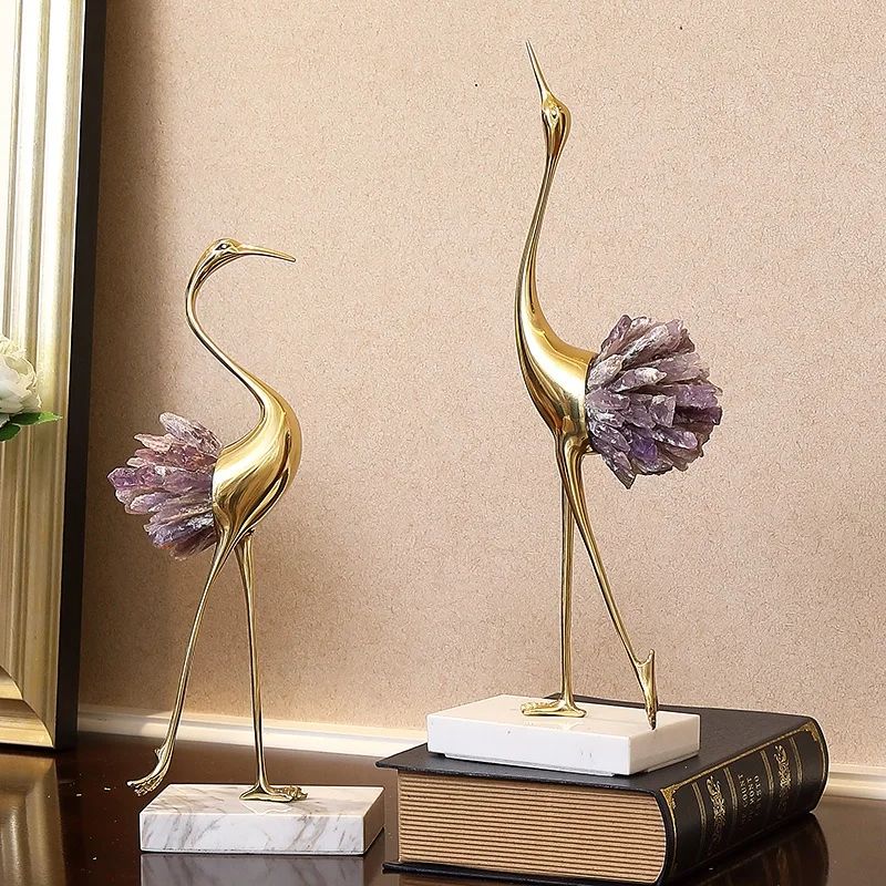 Грациозные красавицы-цапли из благородной латуни и натуральных, отборных кристаллов аметиста. Изящный декор, который ярко украсит ваш интерьер – домашний и (или) деловой. Отличное решение для ценителей классных, очаровательных вещей в личном пространстве.