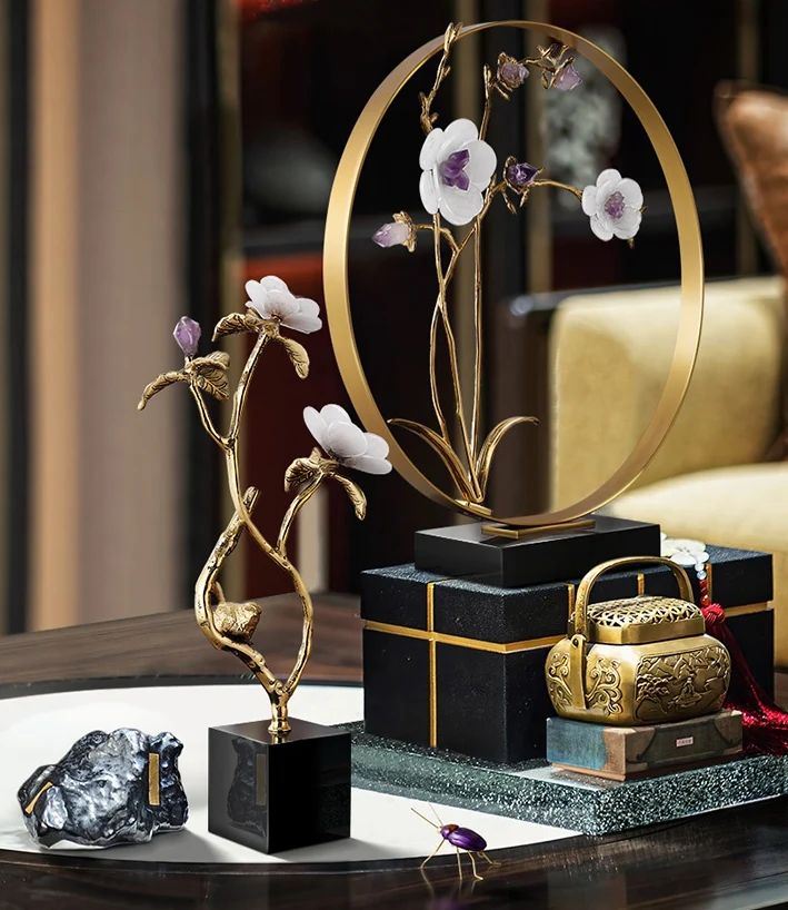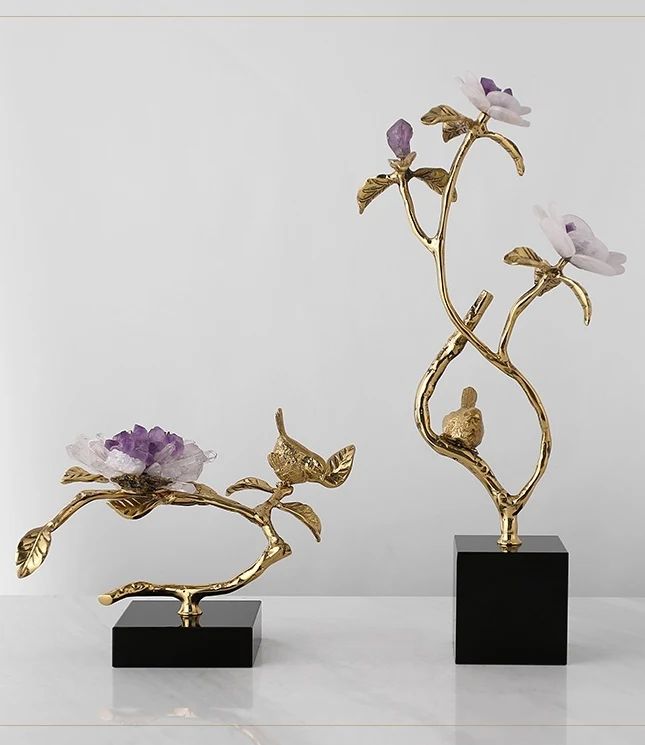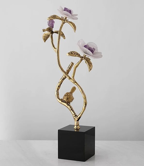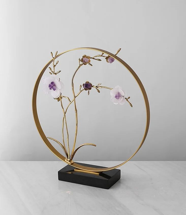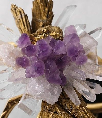 Изящные цветы Monsterior Gems – роскошный декор для домашнего и (или) делового интерьера! Желанные и участники торжеств и свадеб. А ещё их стоит дарить любимым и близким людям. Отборные кристаллы аметиста и кварца, благородная латунь, натуральный чёрный мрамор.