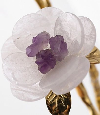 Статуэтка Цветы из кварца и аметиста на подставке из мрамора