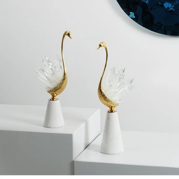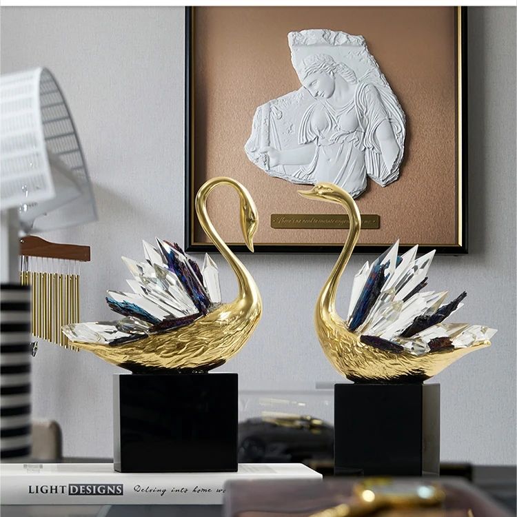 Очаровательные лебеди Monsterior Gems – классный декор, который отлично впишется в современный интерьер. Эстетически прекрасное решение и действенный позитивный символизм для привлечения любви и сбережения семейного очага. Благородная латунь, отборные кристаллы флюорита и горного хрусталя, натуральный чёрный мрамор.