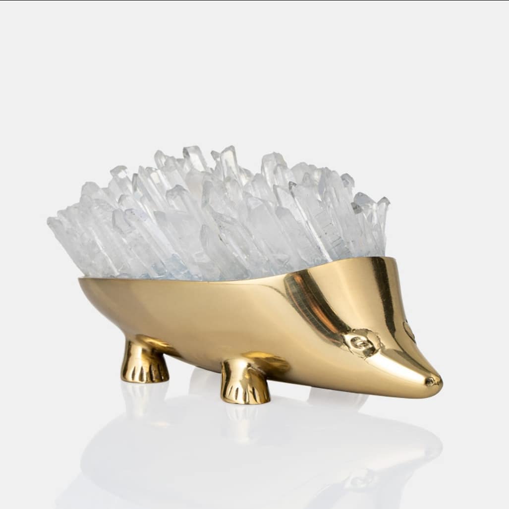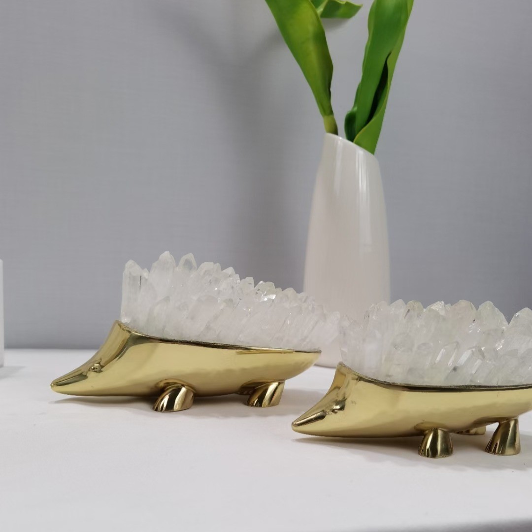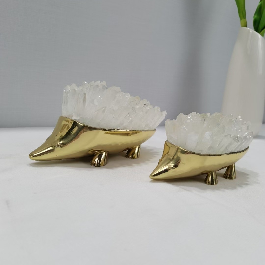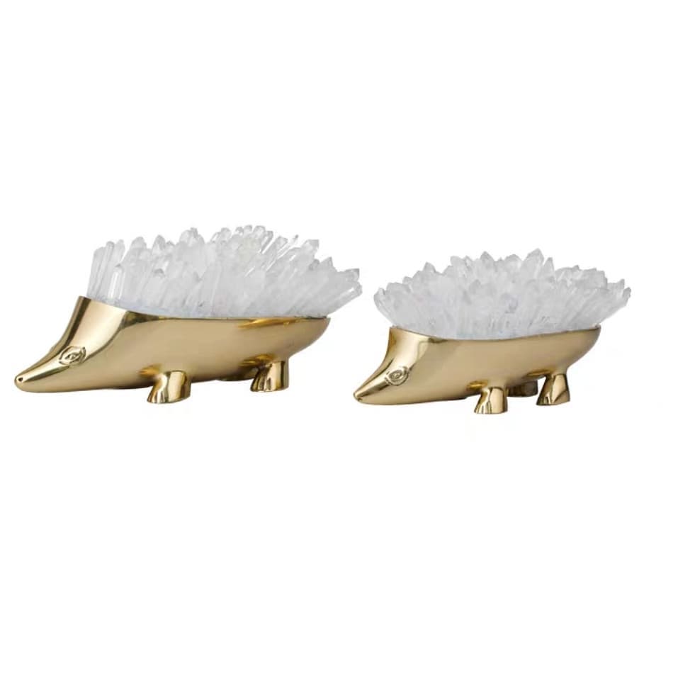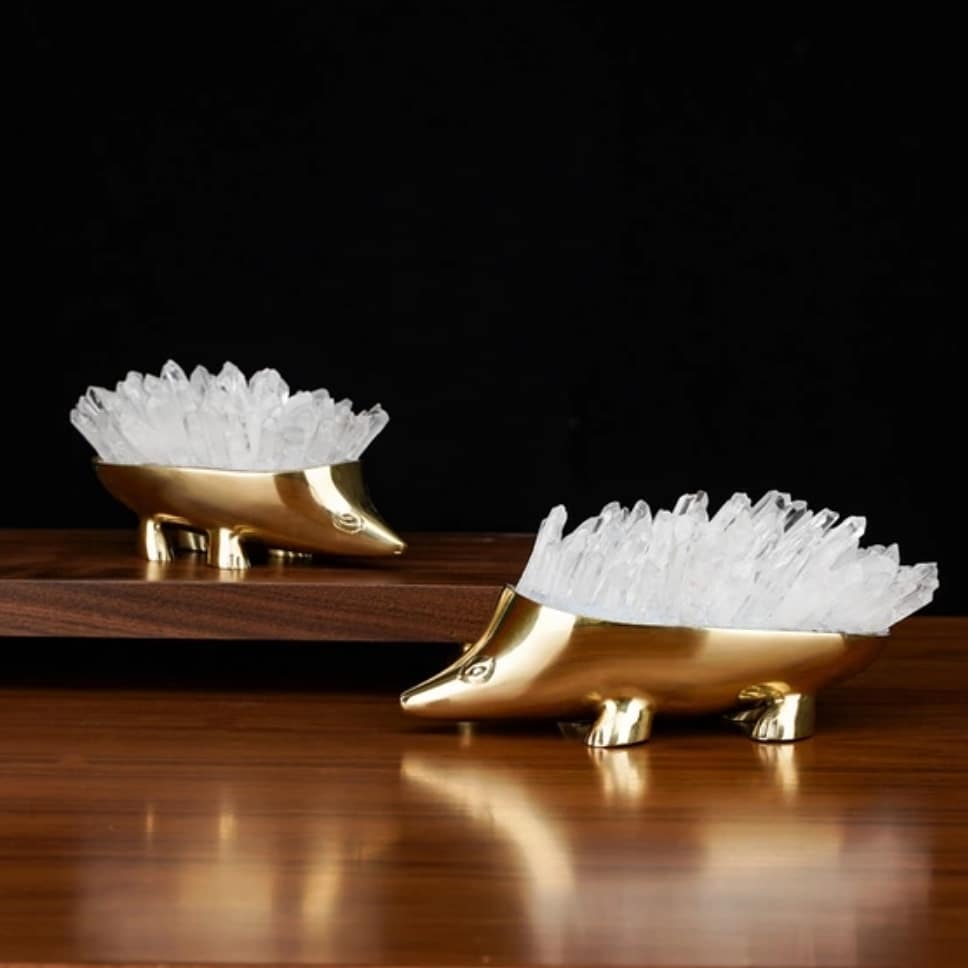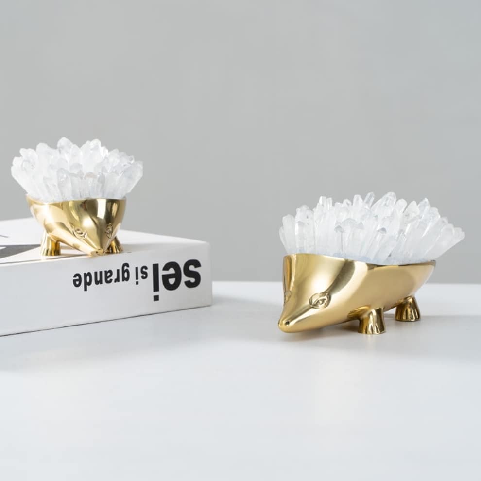 Парочка очаровательных ёжиков Monsterior Gems. Шикарный, яркий декор из благородной латуни и отборных кристаллов горного хрусталя. Няшное украшение для стильного, современного интерьера. Любители магии камней оценят позитивный антинегативный эффект горного хрусталя.