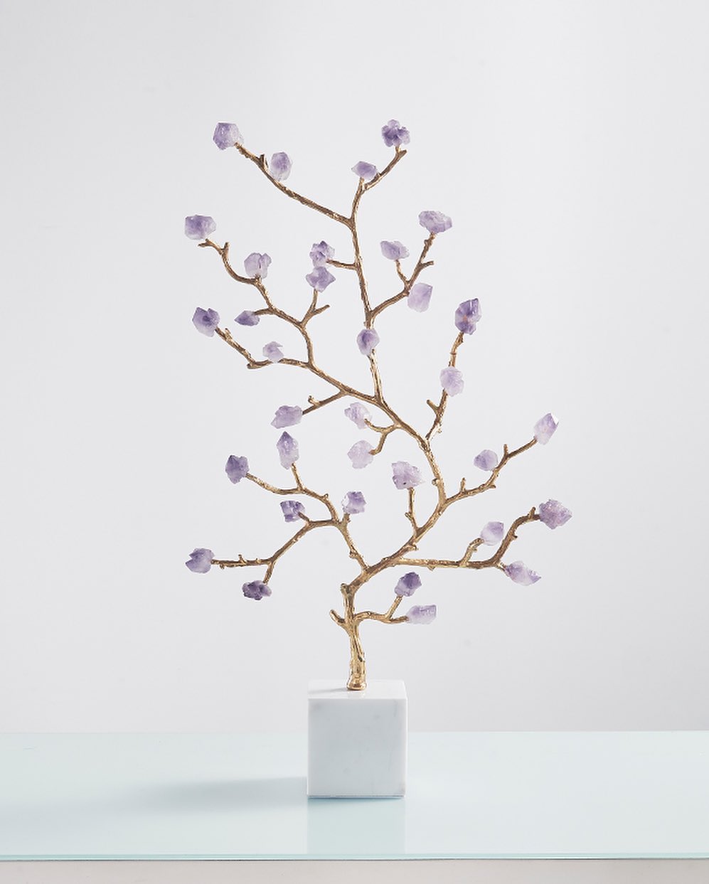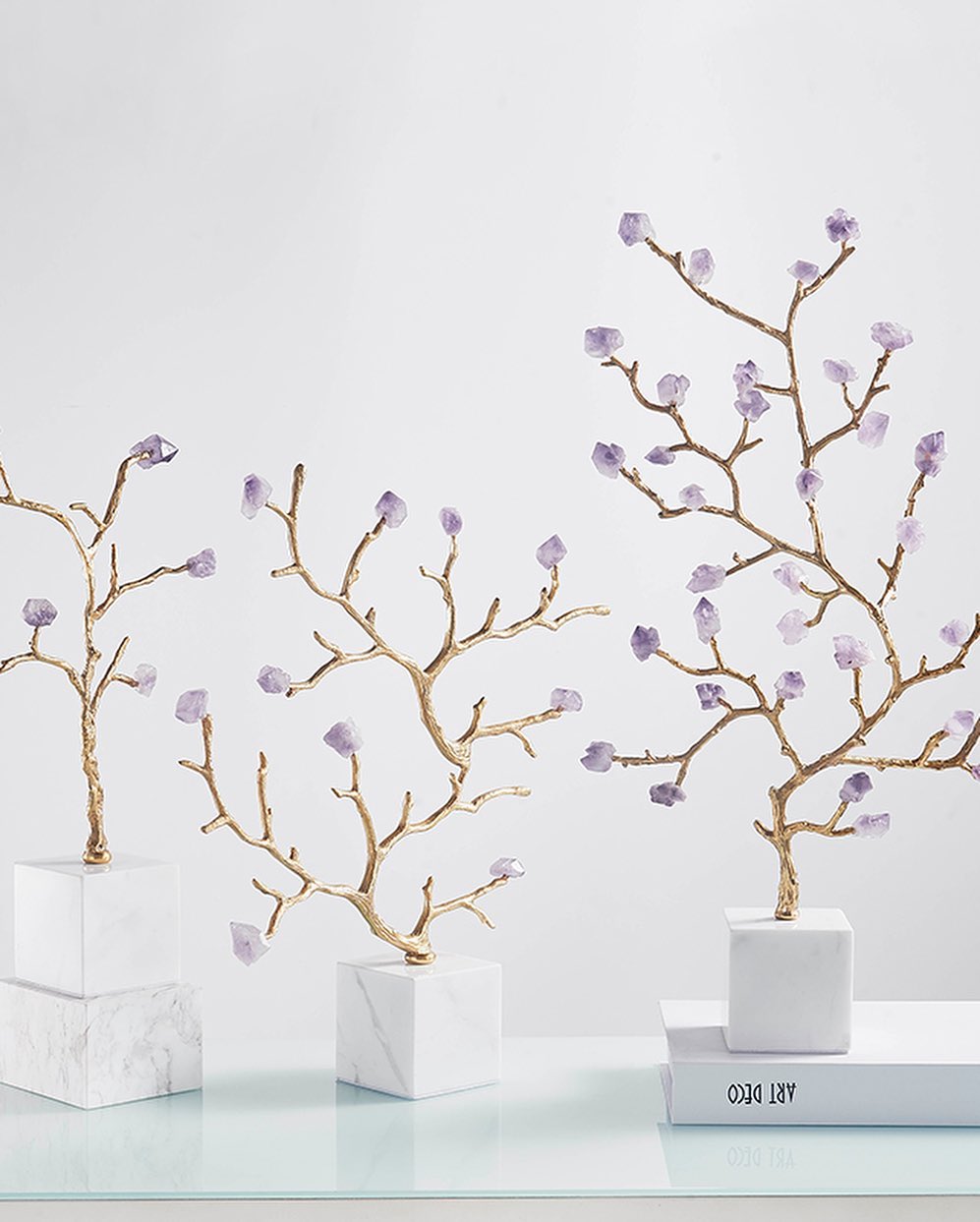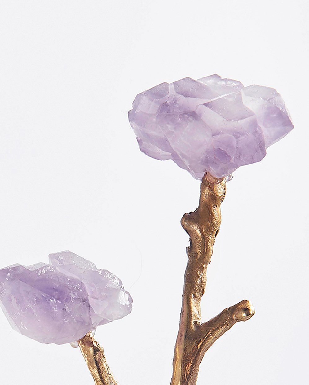 Стильный декор Monsterior Gems, который классно впишется в современный интерьер. Изящные деревца из благородной латуни, отборных кристаллов натурального аметиста и белоснежного мрамора.