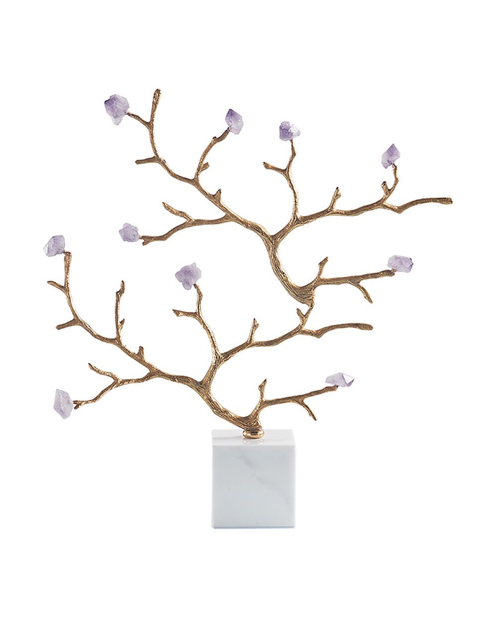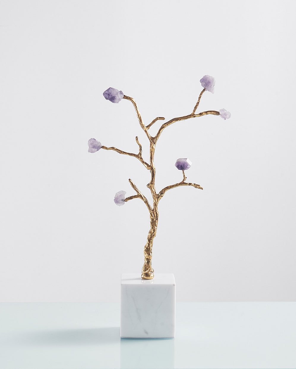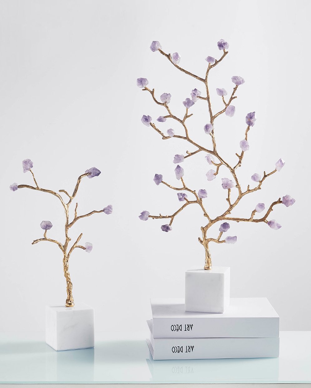 Стильный декор Monsterior Gems, который классно впишется в современный интерьер. Изящные деревца из благородной латуни, отборных кристаллов натурального аметиста и белоснежного мрамора.