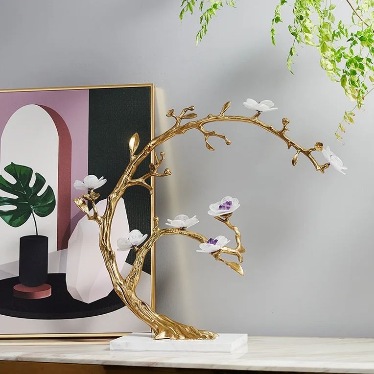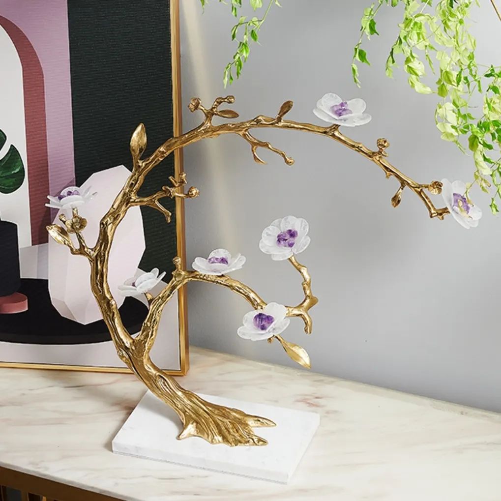 Стильный и очаровательный декор Monsterior Gems. Изящная птичка из благородной латуни, которая приносит только хорошие весточки. Веточка с цветами из кристаллов отборного натурального аметиста и кварца!