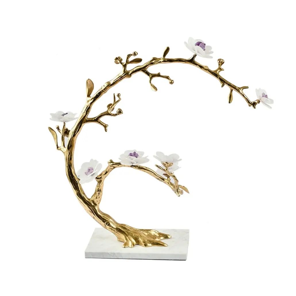 Статуэтка Веточка полукруг с цветами из аметиста и кварца