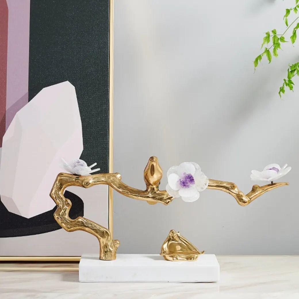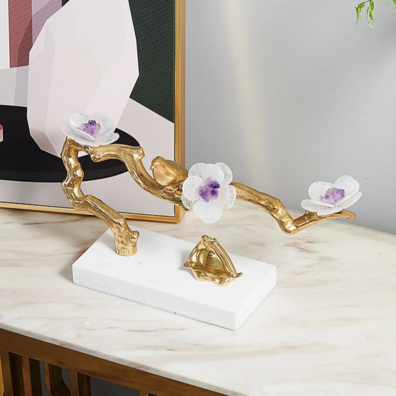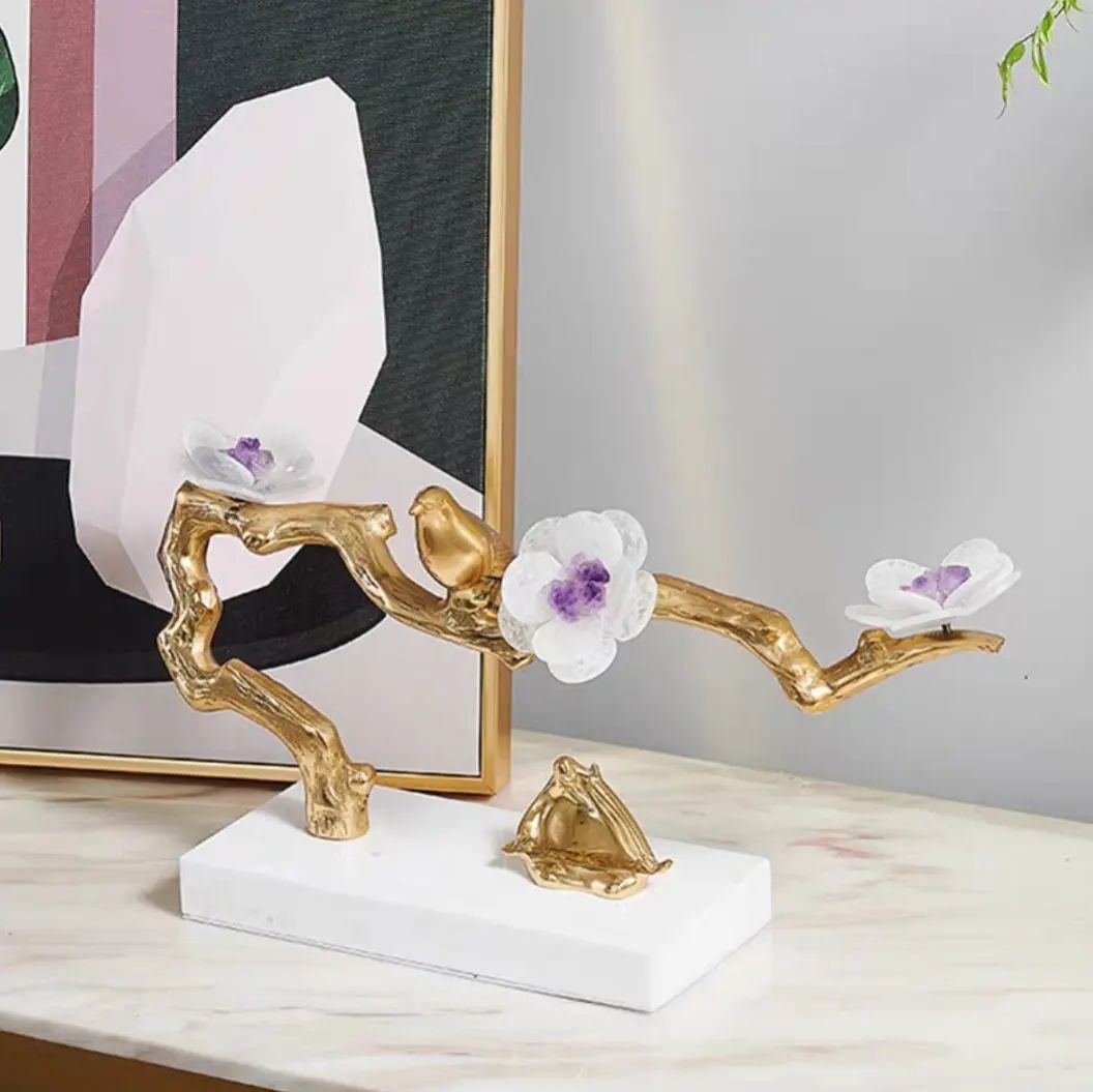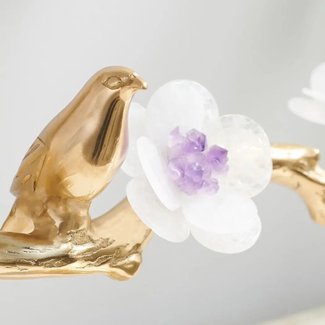 Стильный и очаровательный декор Monsterior Gems. Изящная птичка из благородной латуни, которая приносит только хорошие весточки. Веточка с цветами из кристаллов отборного натурального аметиста и кварца!
